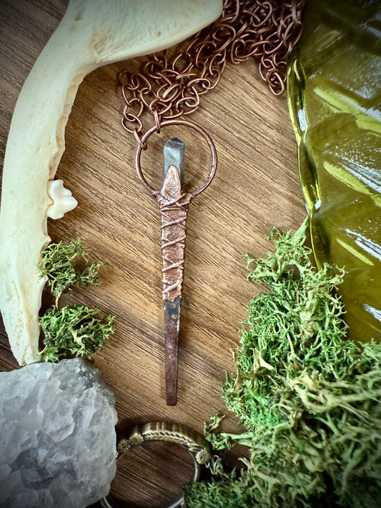 Coffin Nail Amulet with Faceted Labradorite