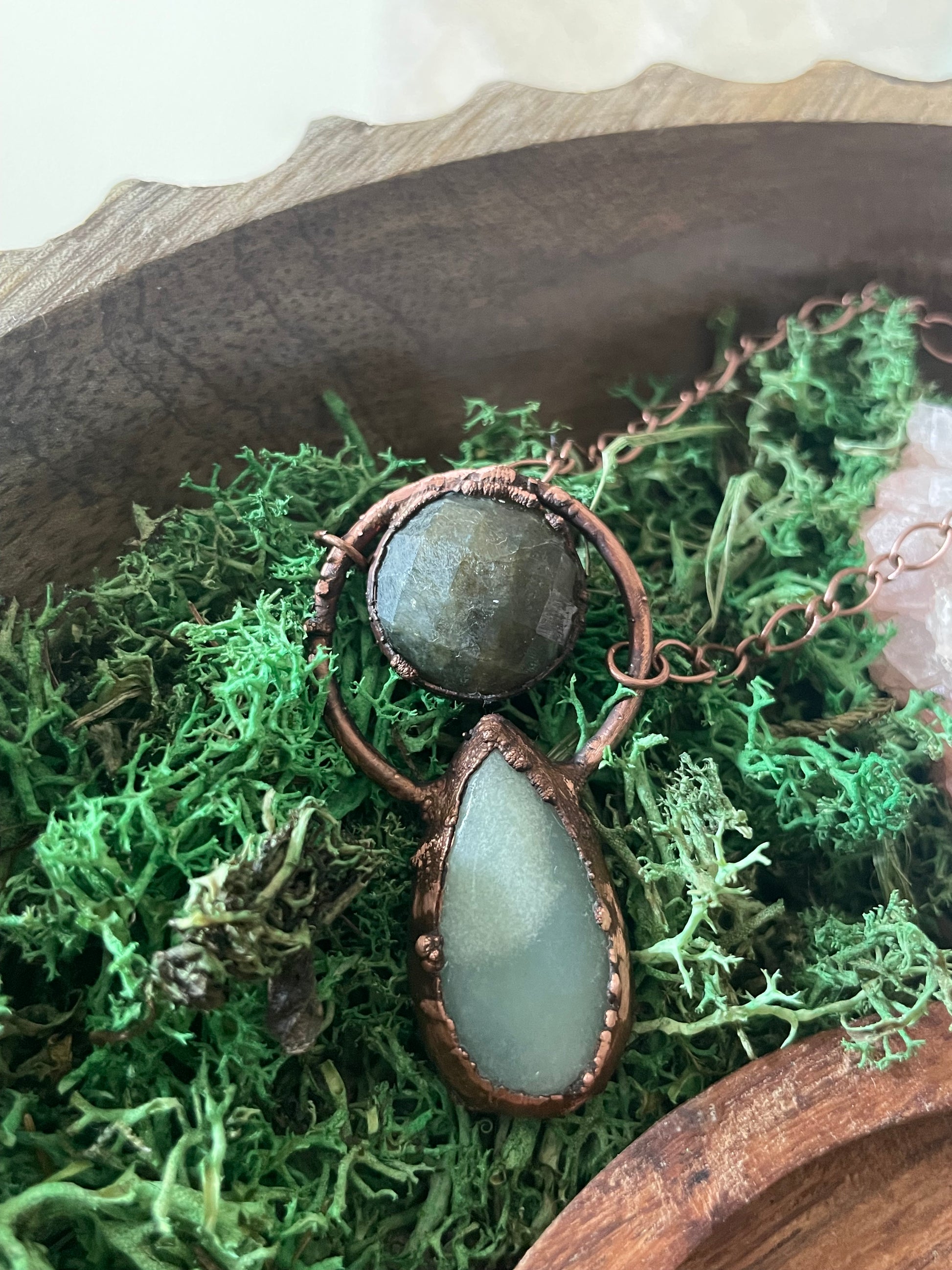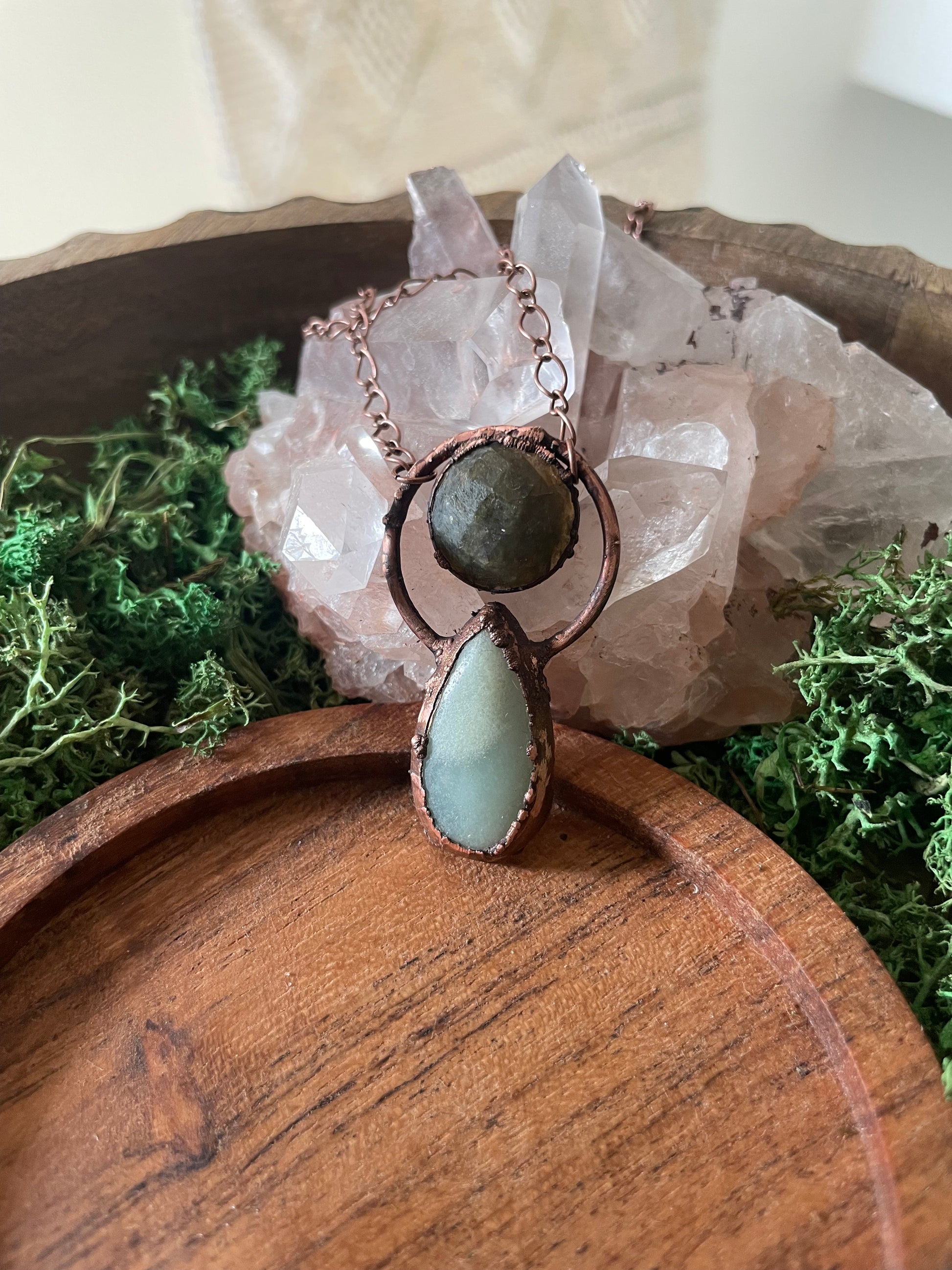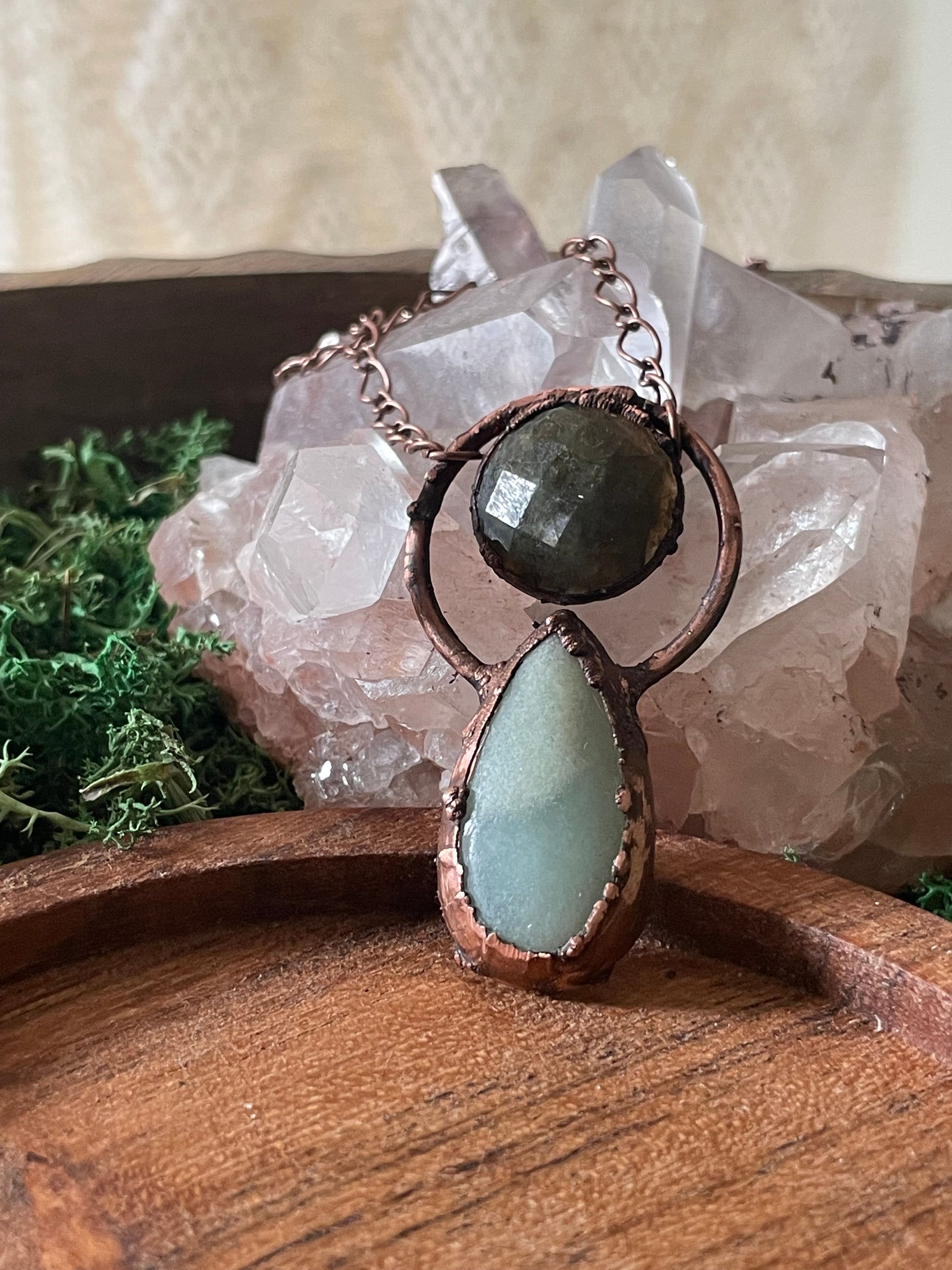 Electroformed Copper Amazonite and Labradorite Necklace