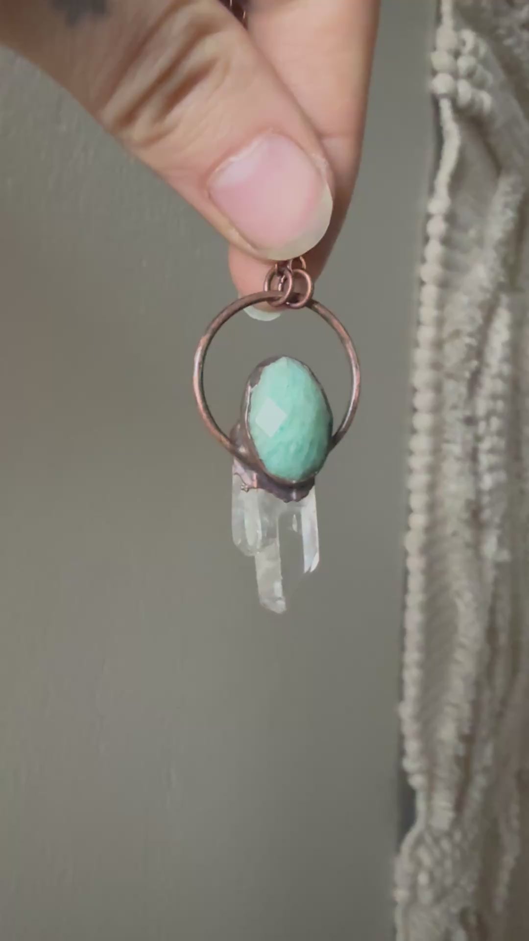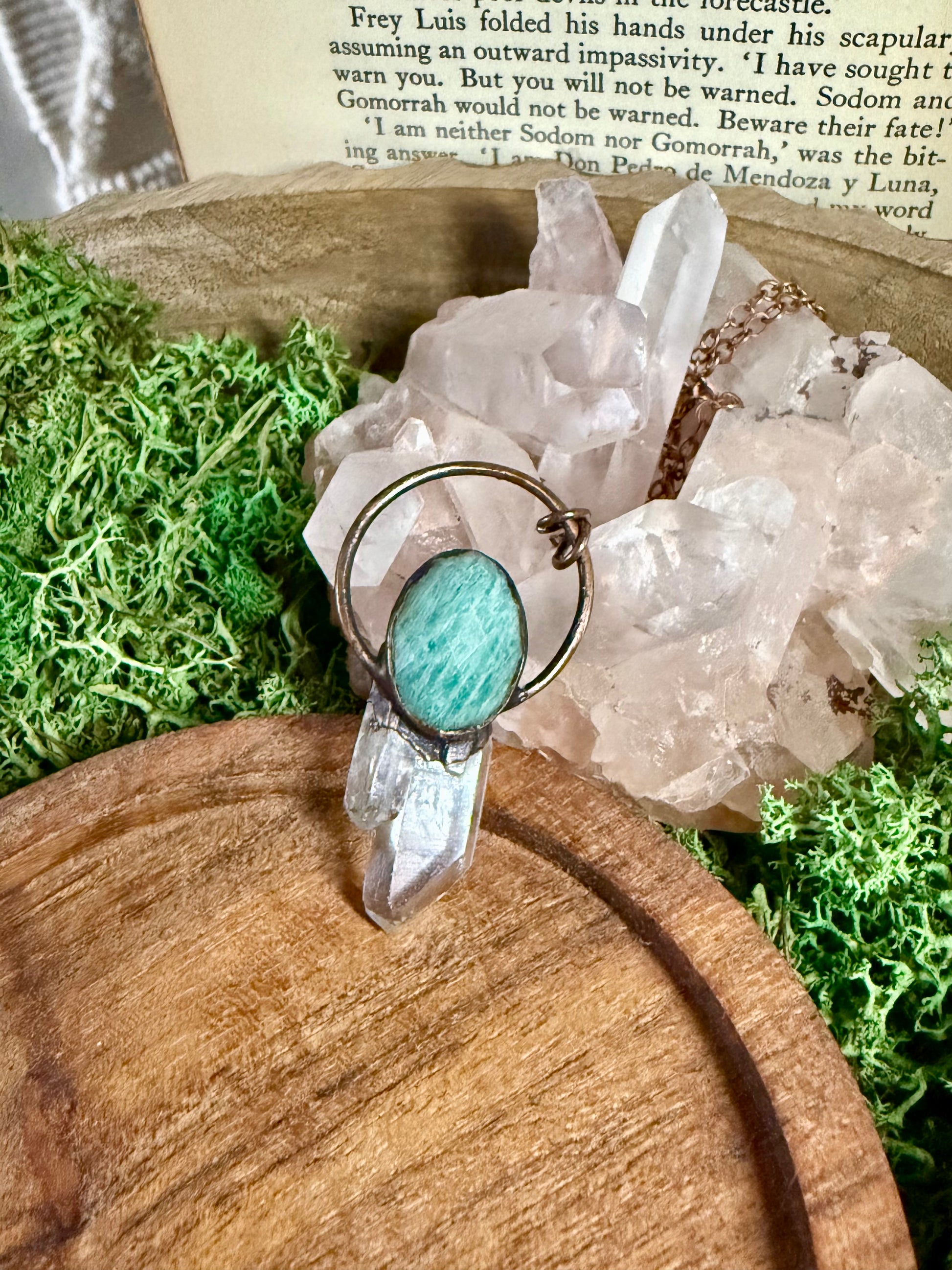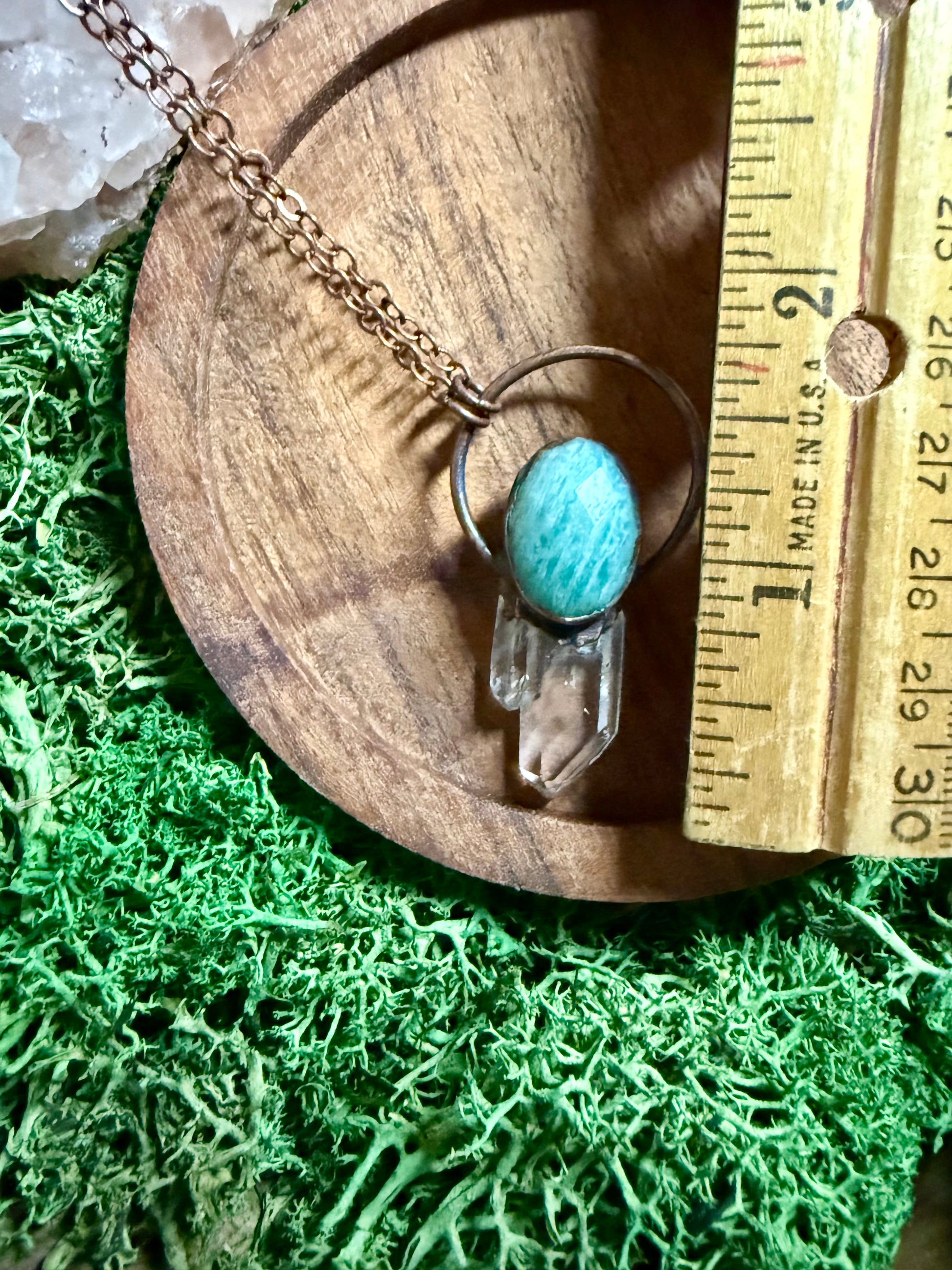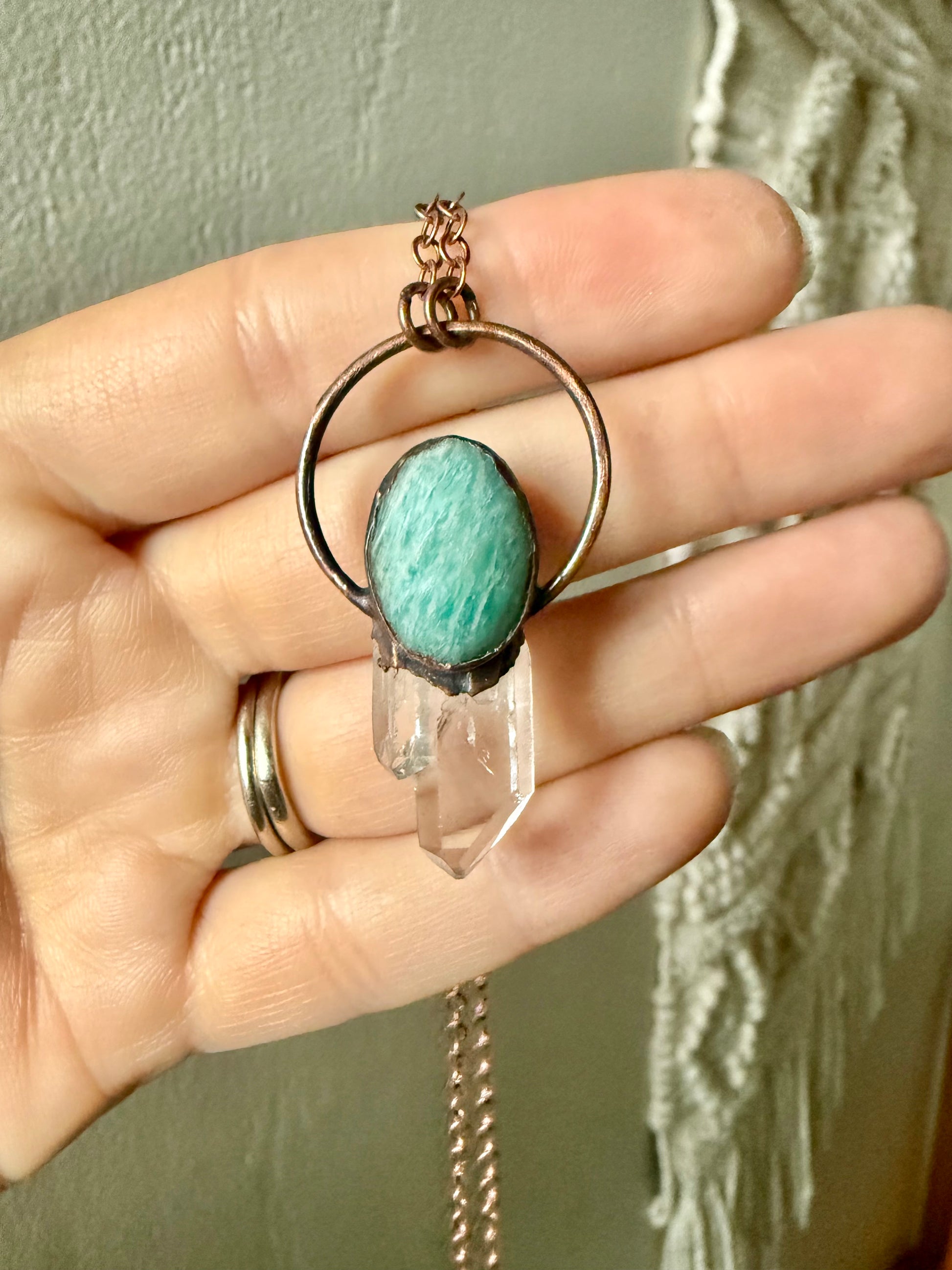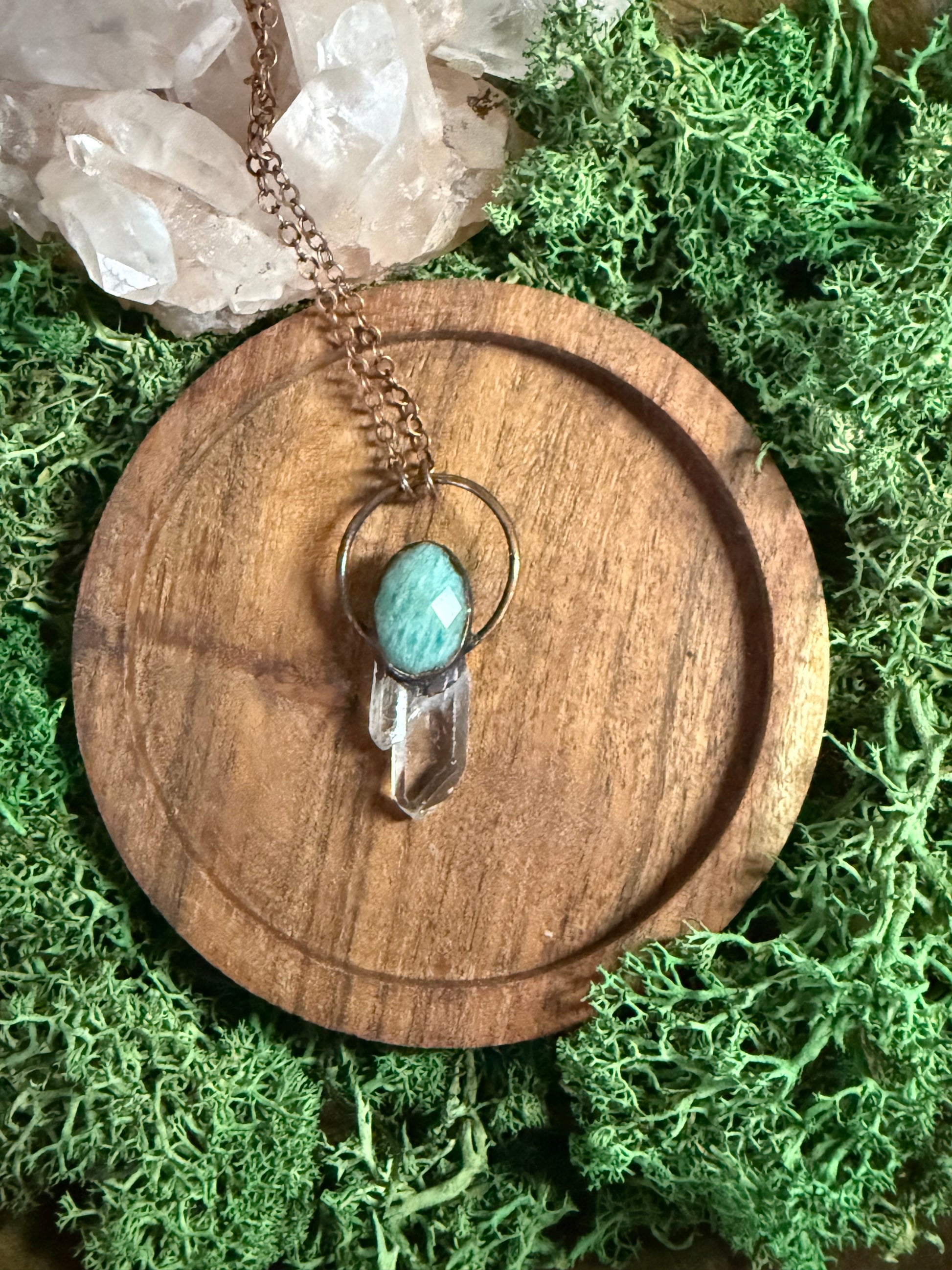 Electroformed Copper Amazonite and Quartz Crystal Necklace