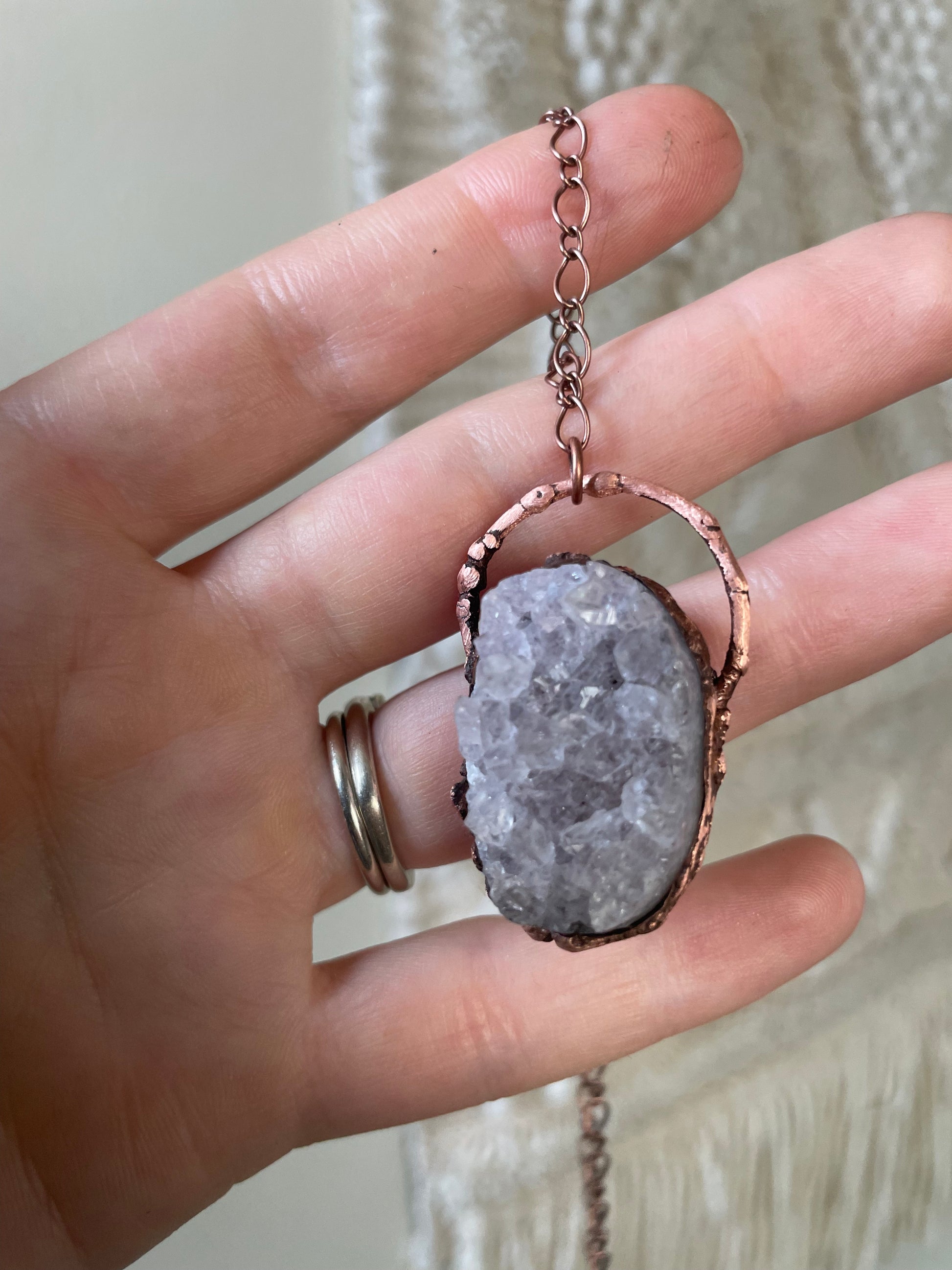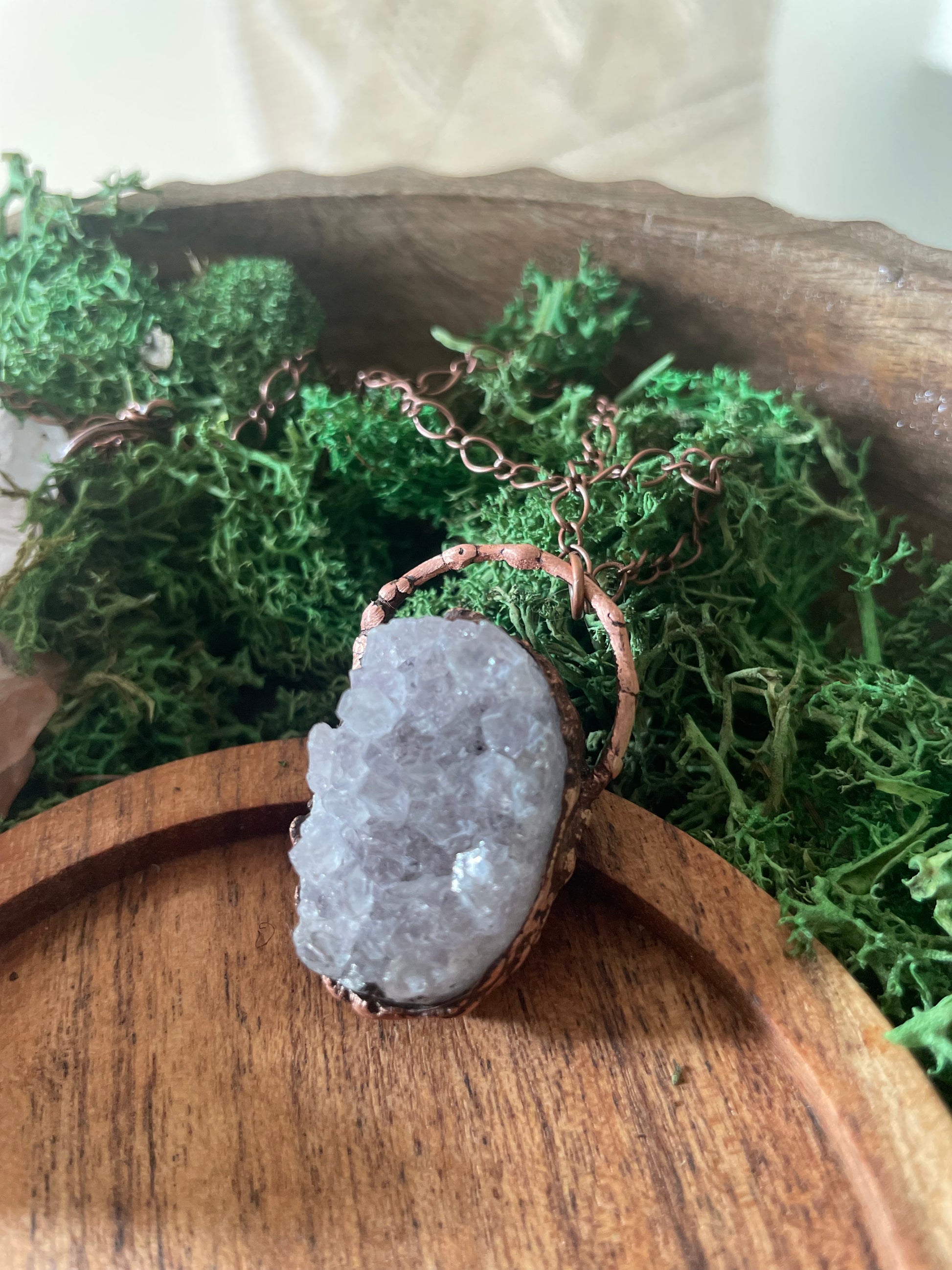 Amethyst Cluster. Electroformed with copper and strung on a copper chain, you choose your length.