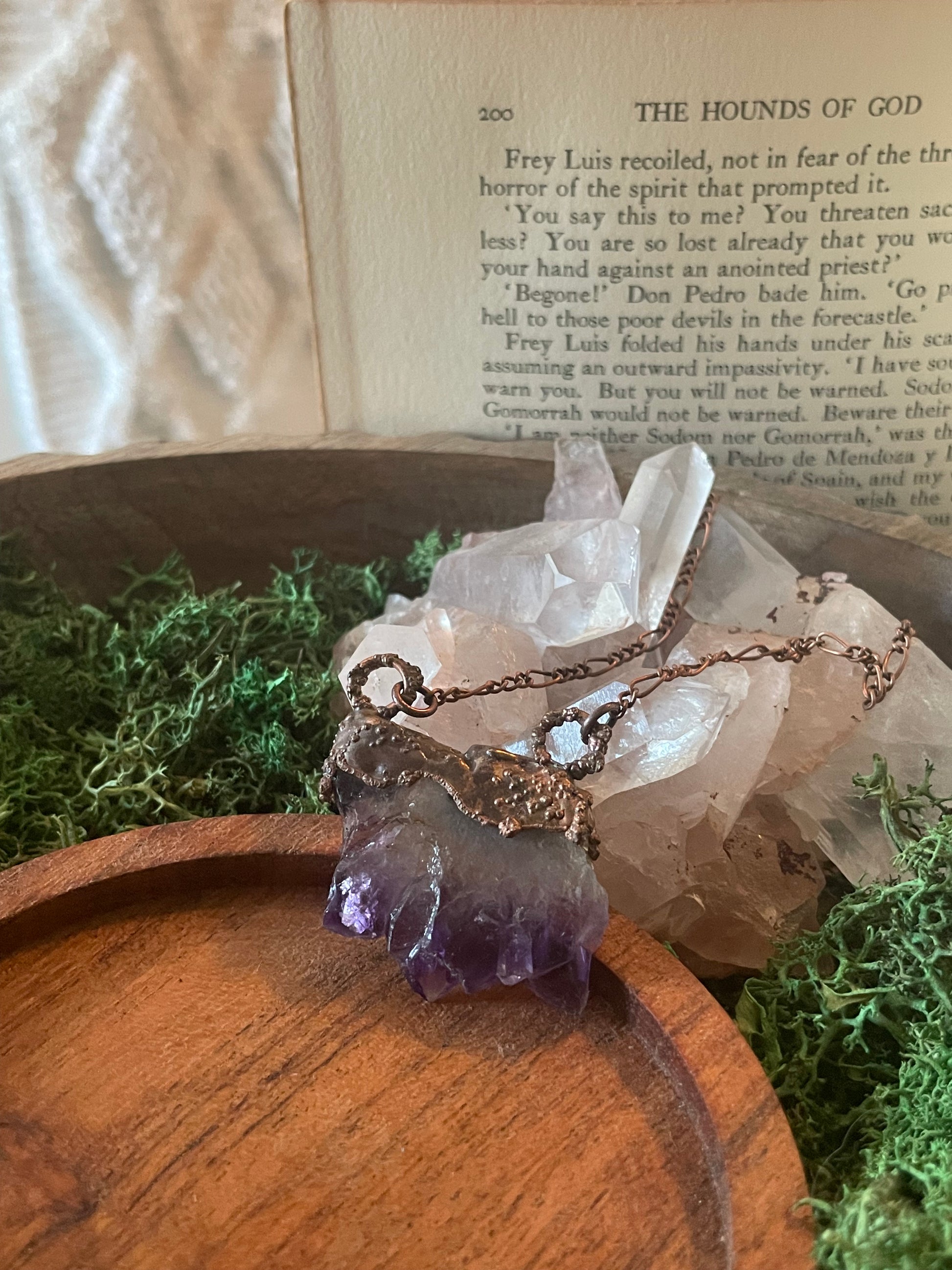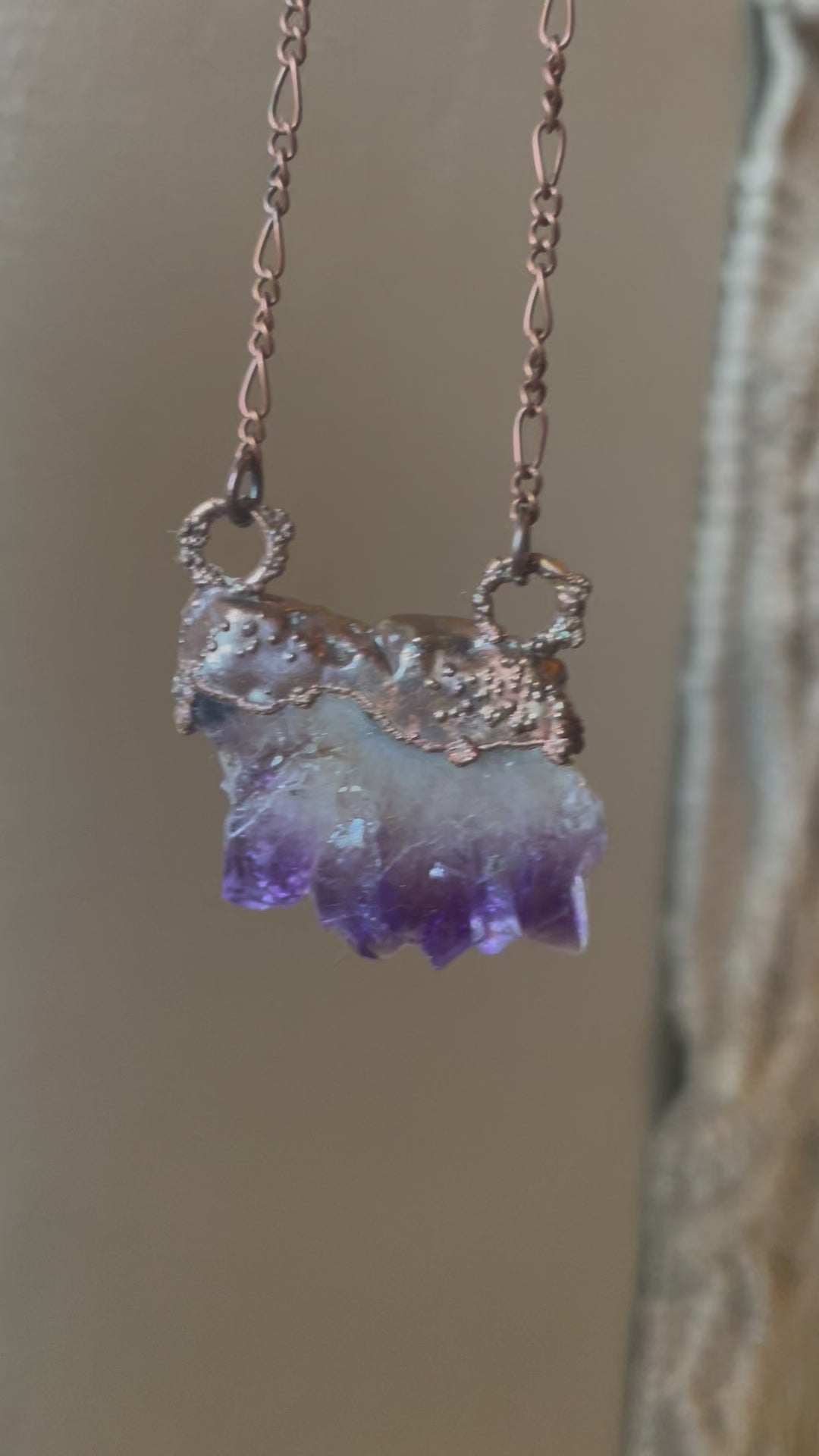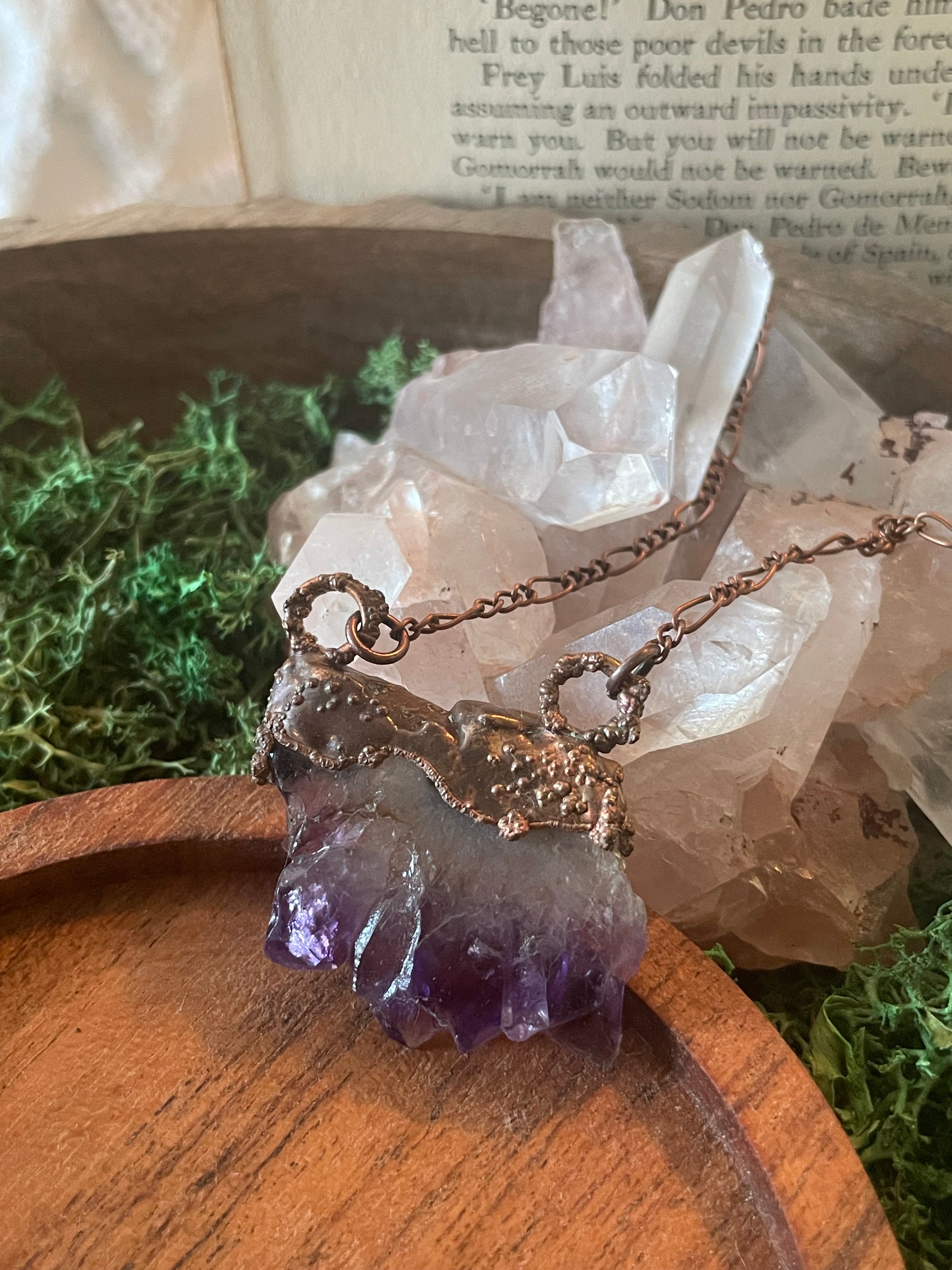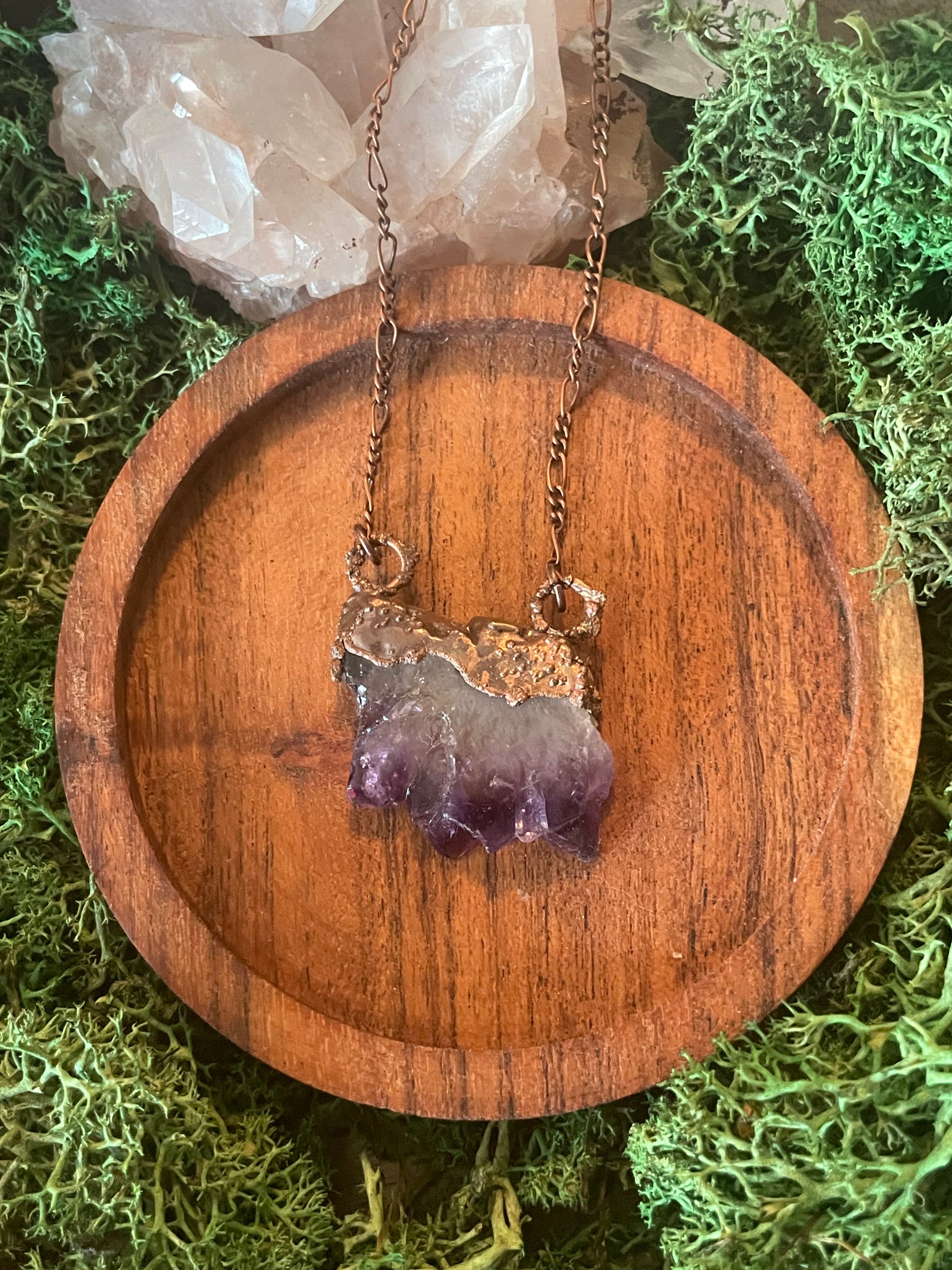 Electroformed Copper Amethyst Stalactite Stone Necklace