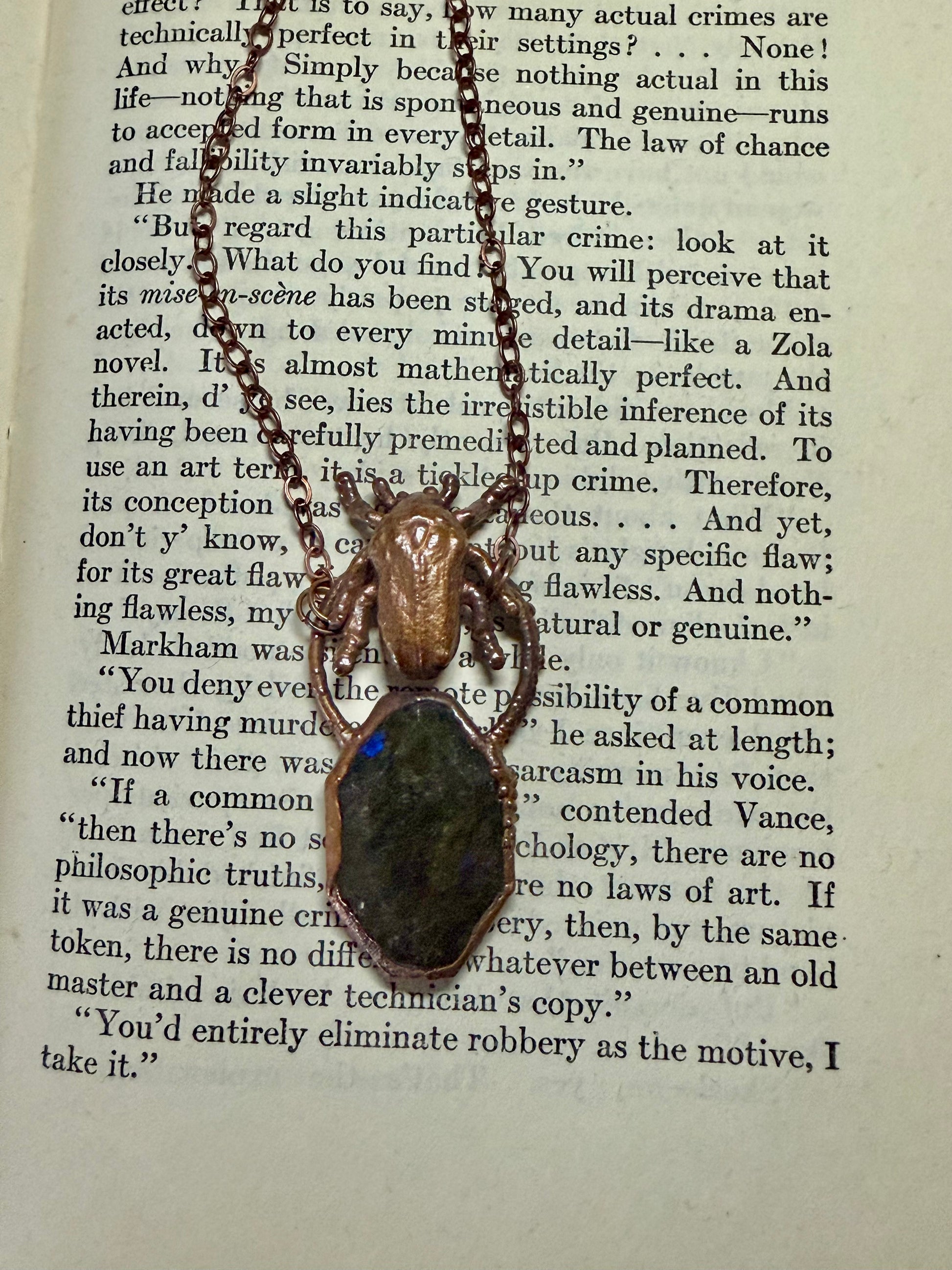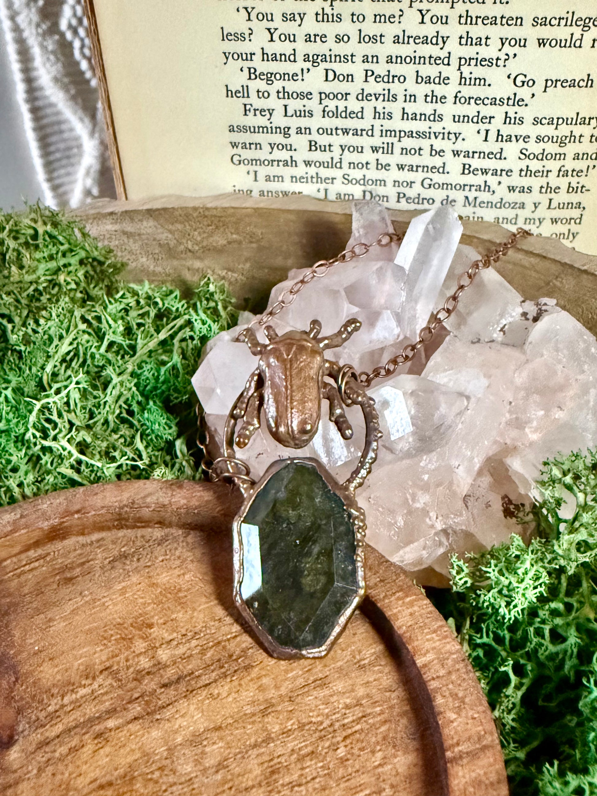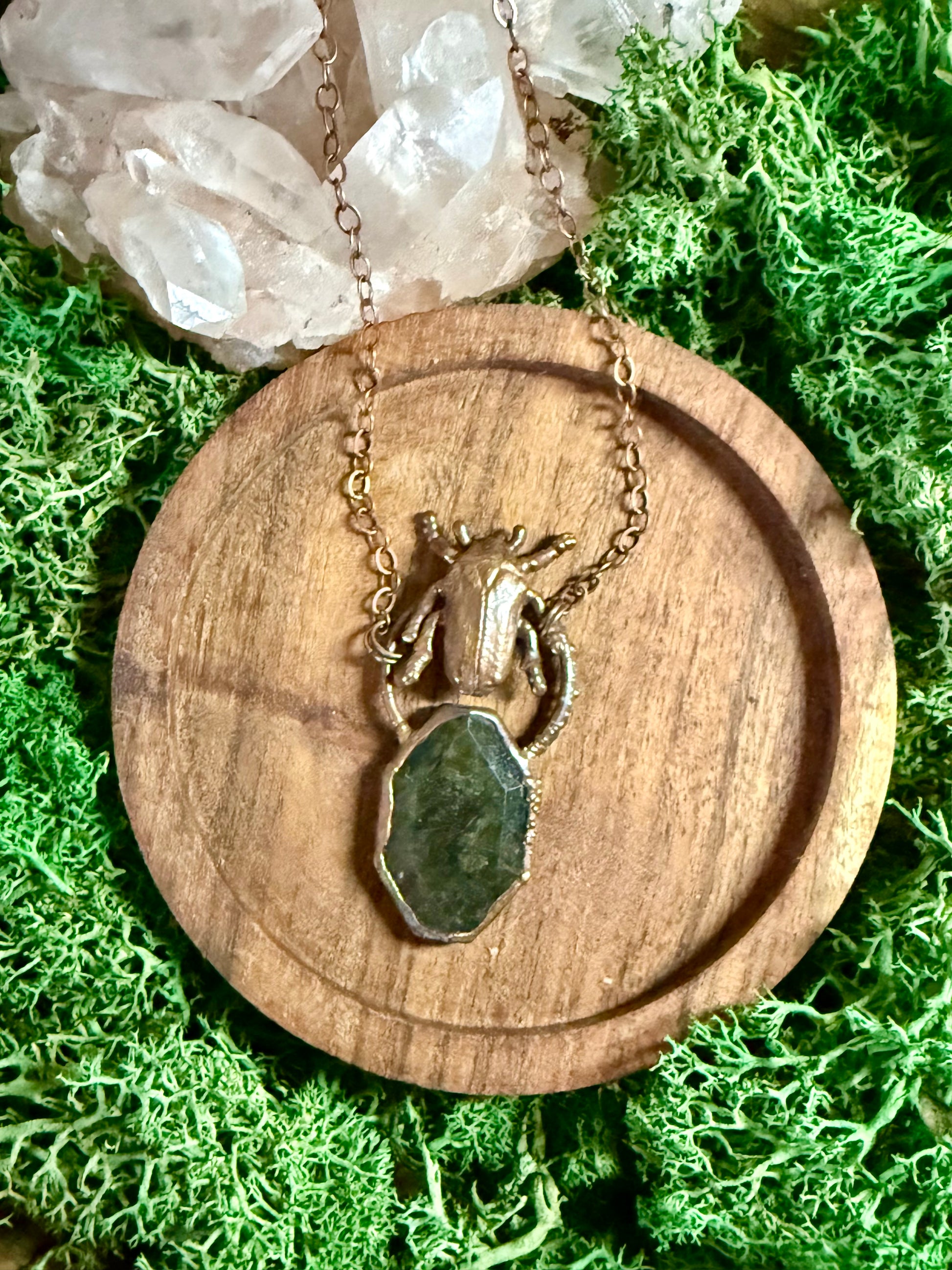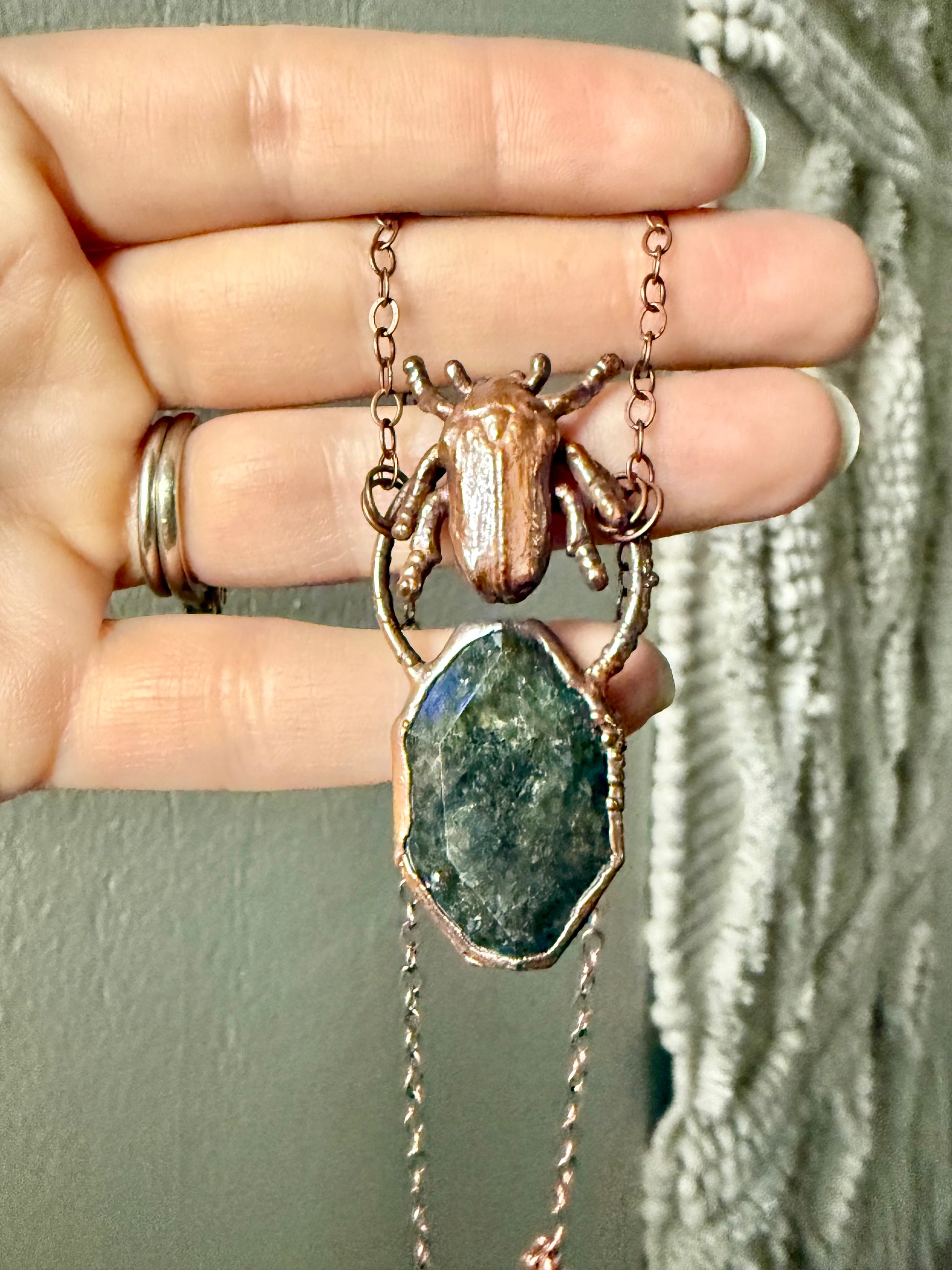 Electroformed Copper Beetle and Labradorite Stone Necklace