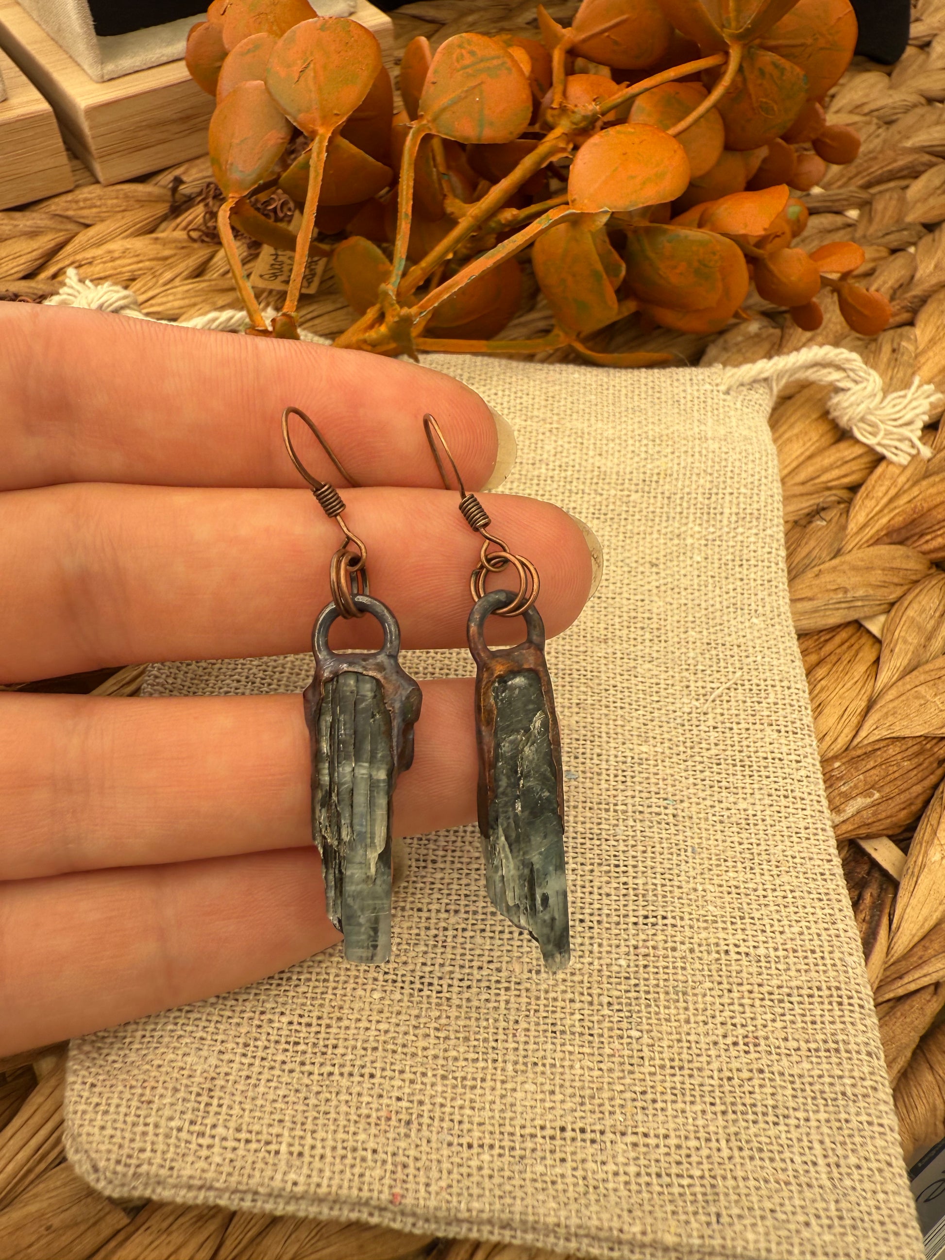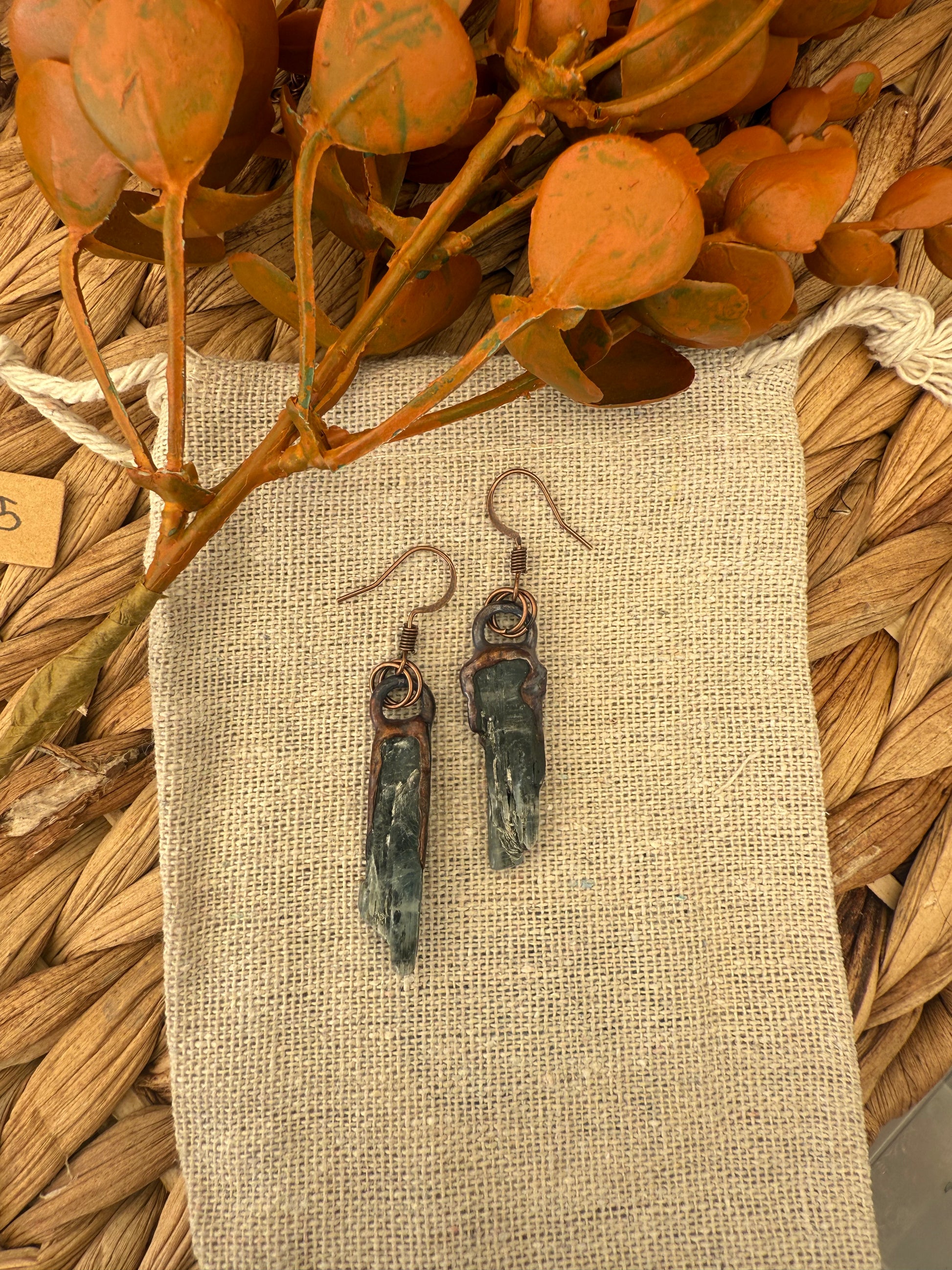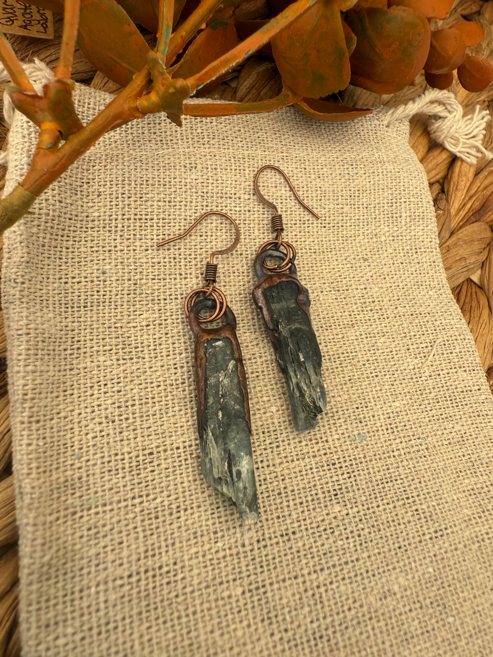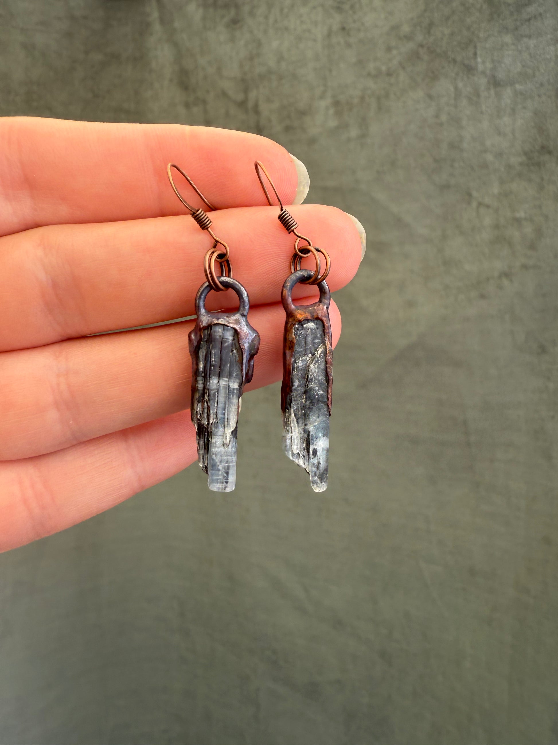 Electroformed Copper Blue Kyanite Earrings