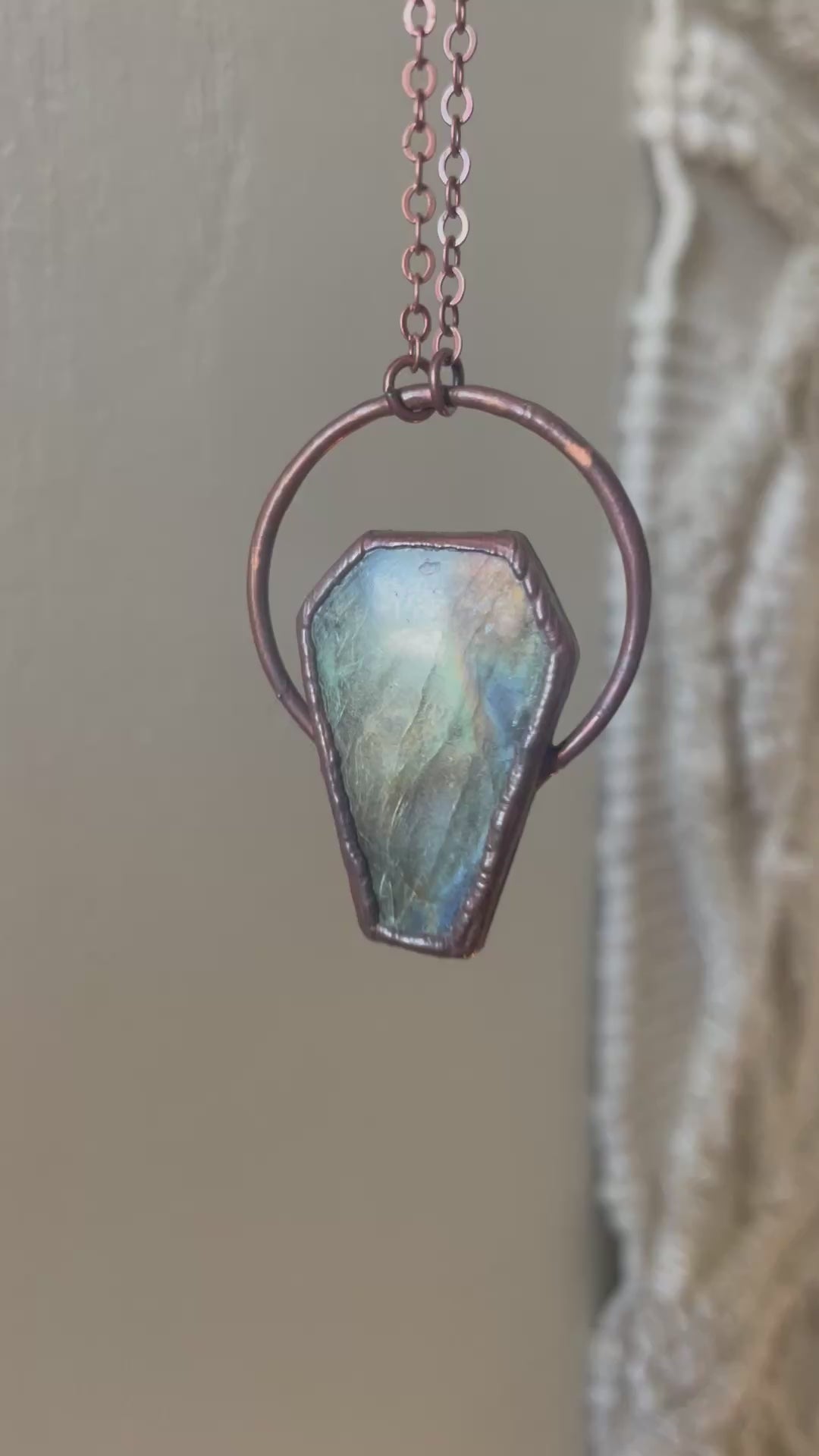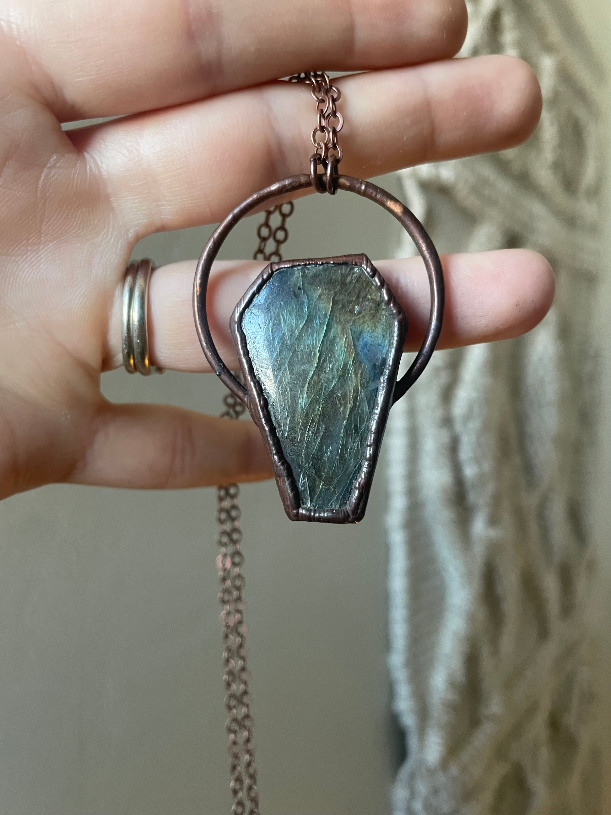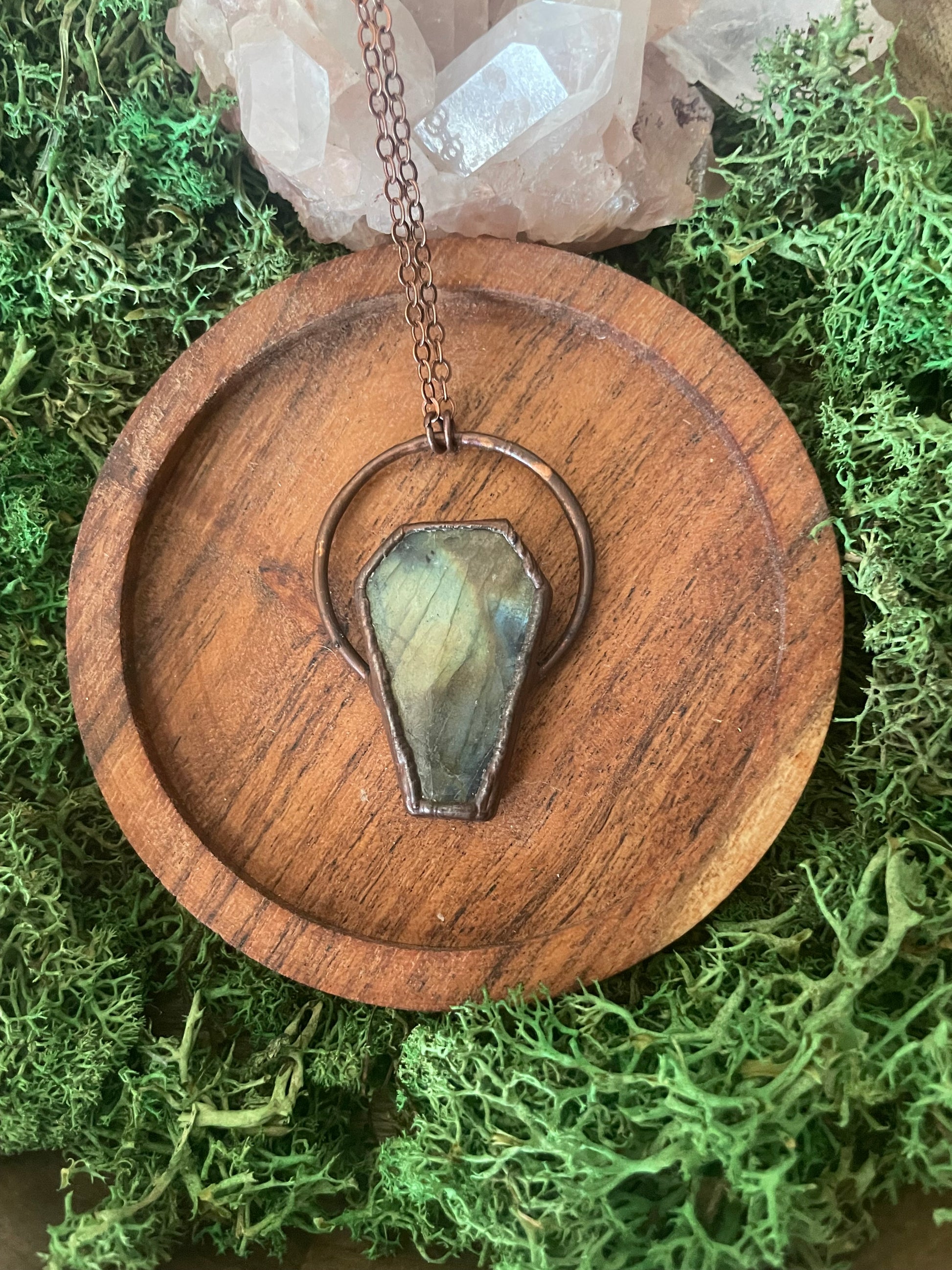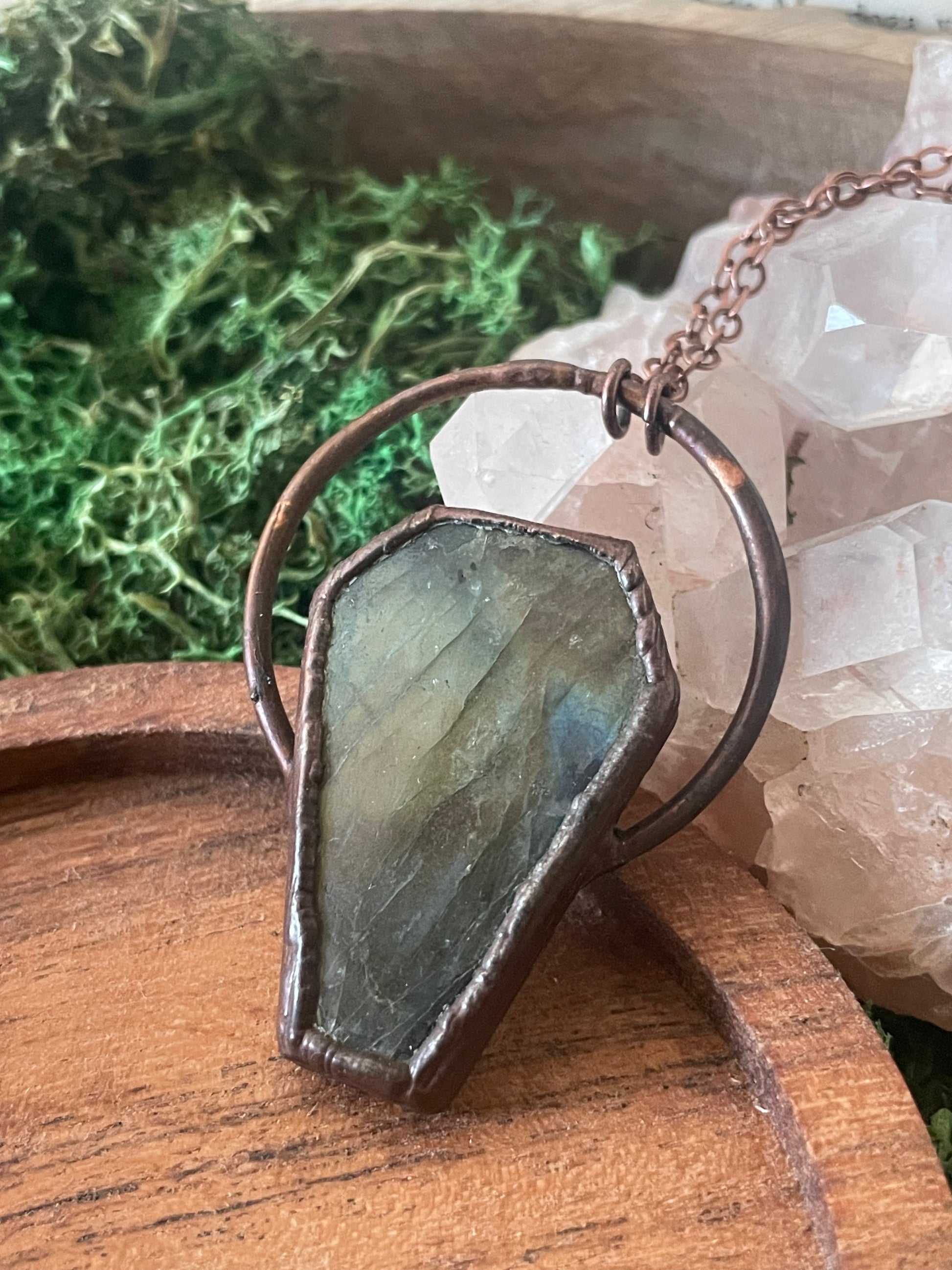 Electroformed Copper Coffin Shaped Labradorite Necklace