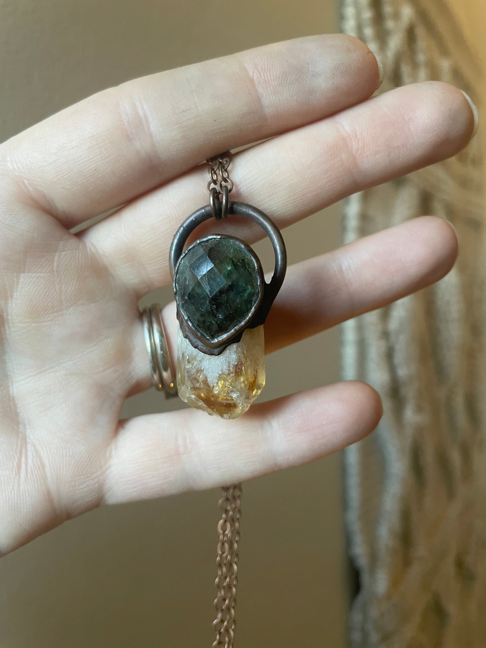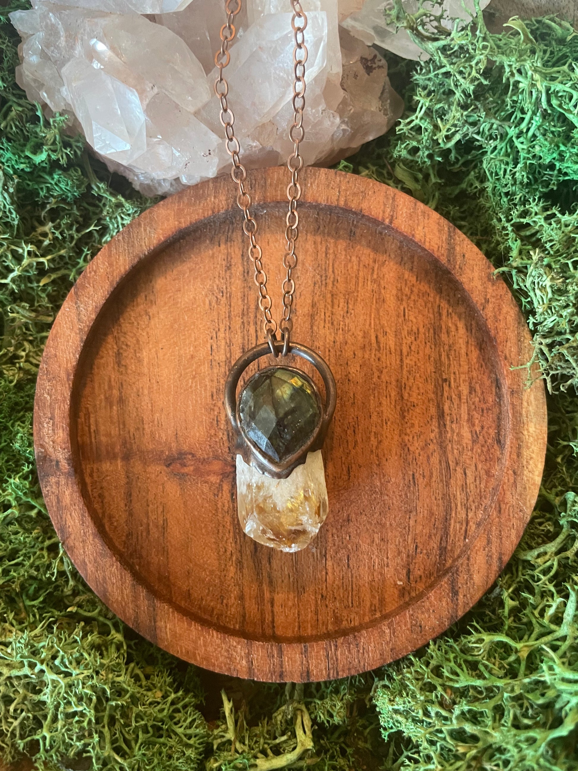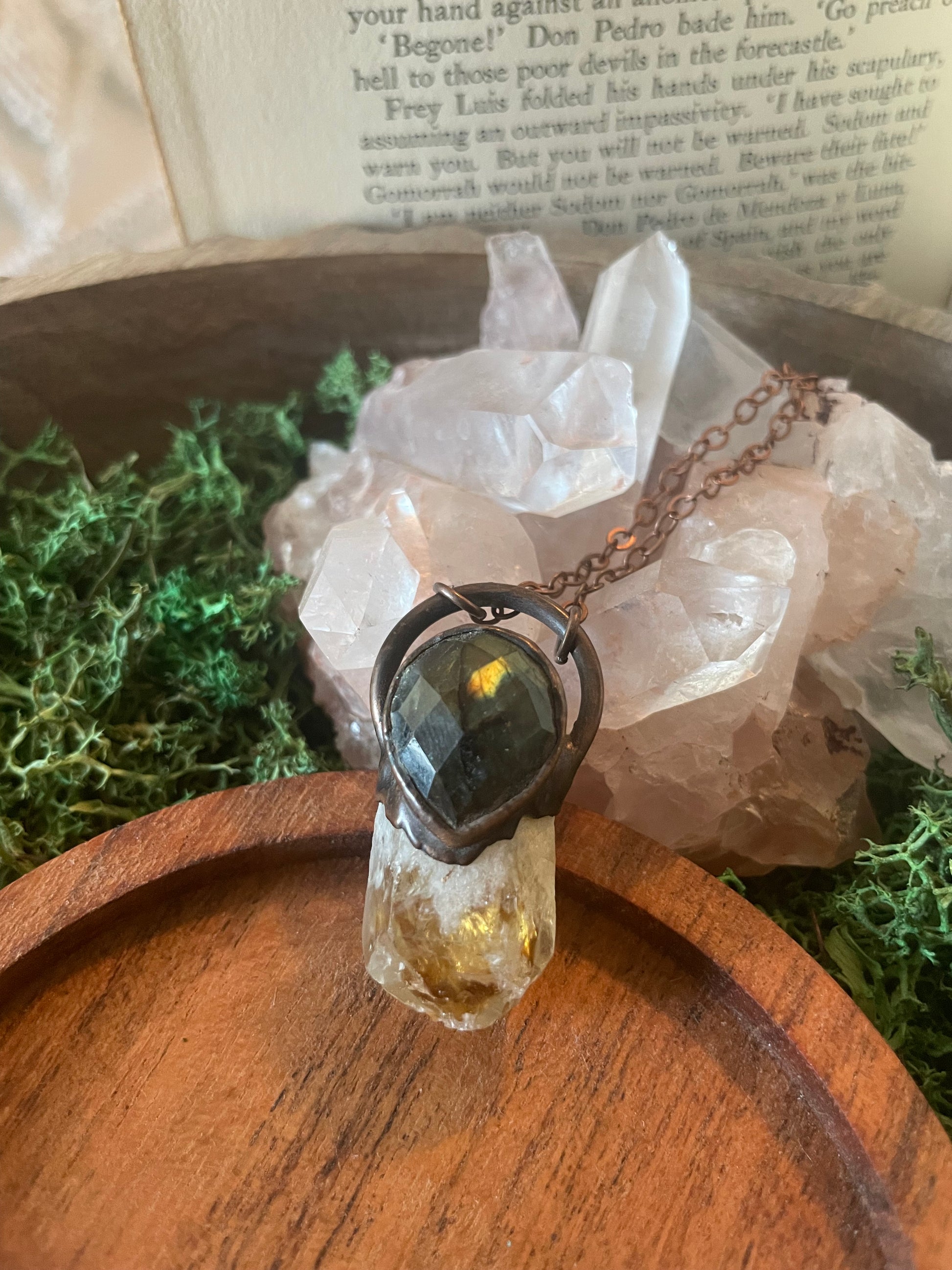 Electroformed Copper Labradorite and Raw Citrine Necklace
