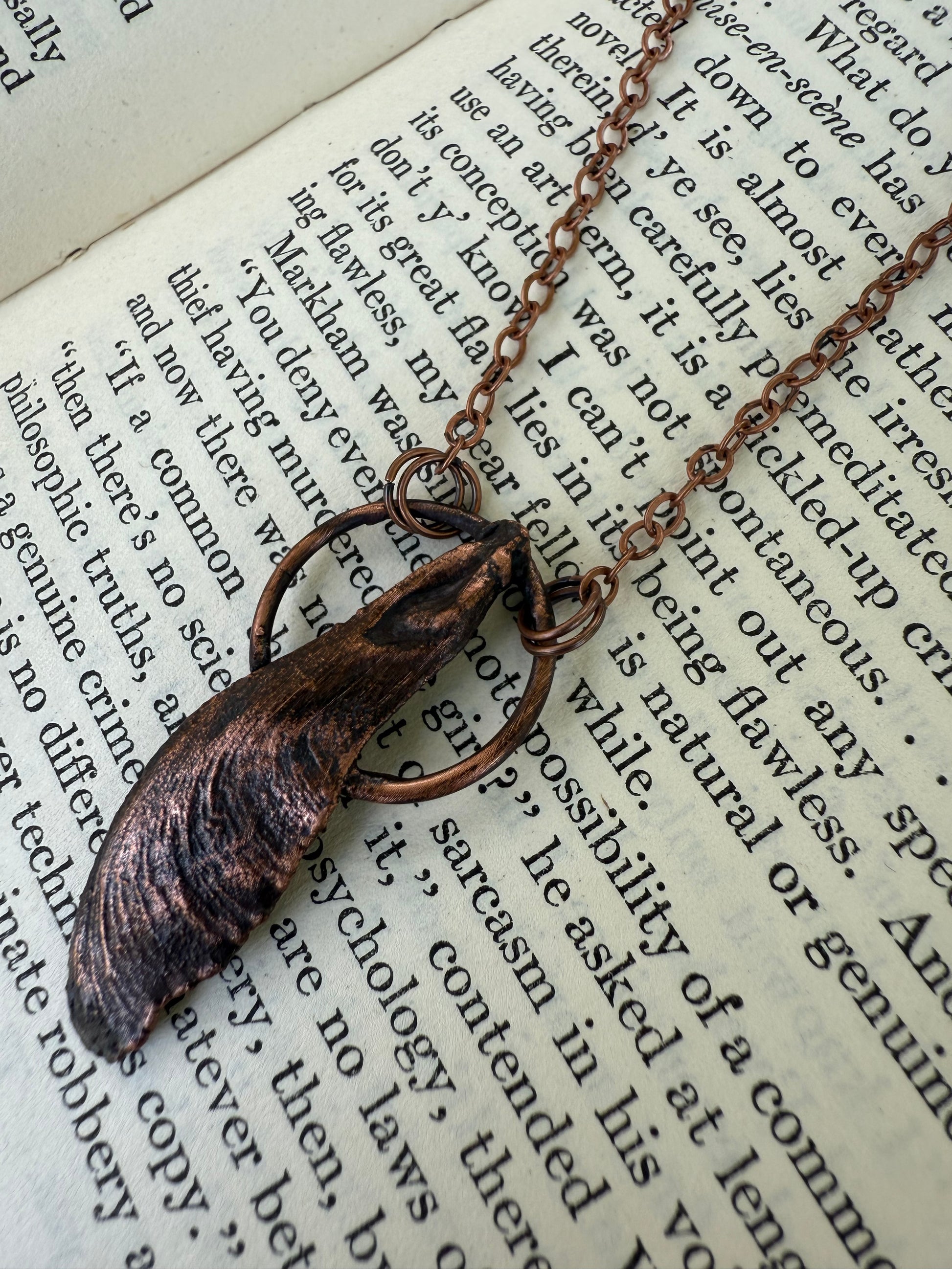 A real Maple Seed. Electroformed with copper and strung on a copper chain, you choose your length.