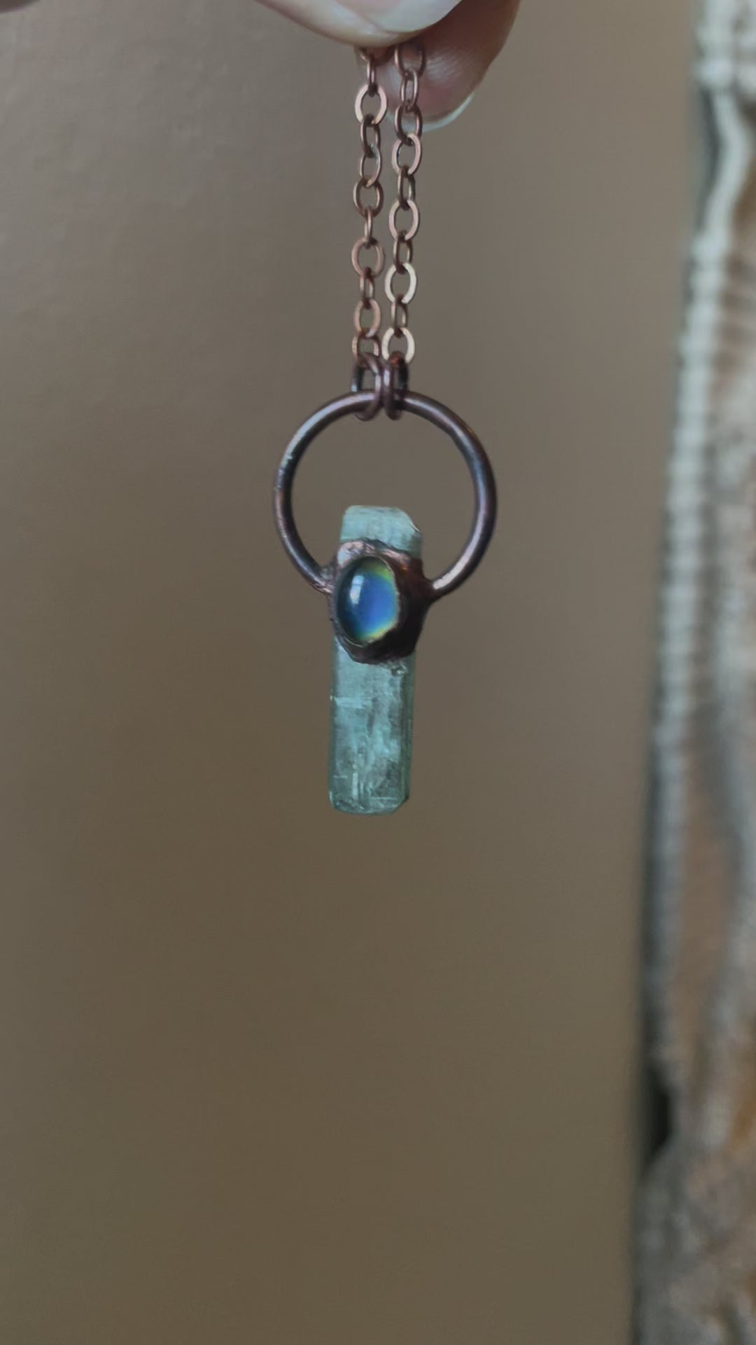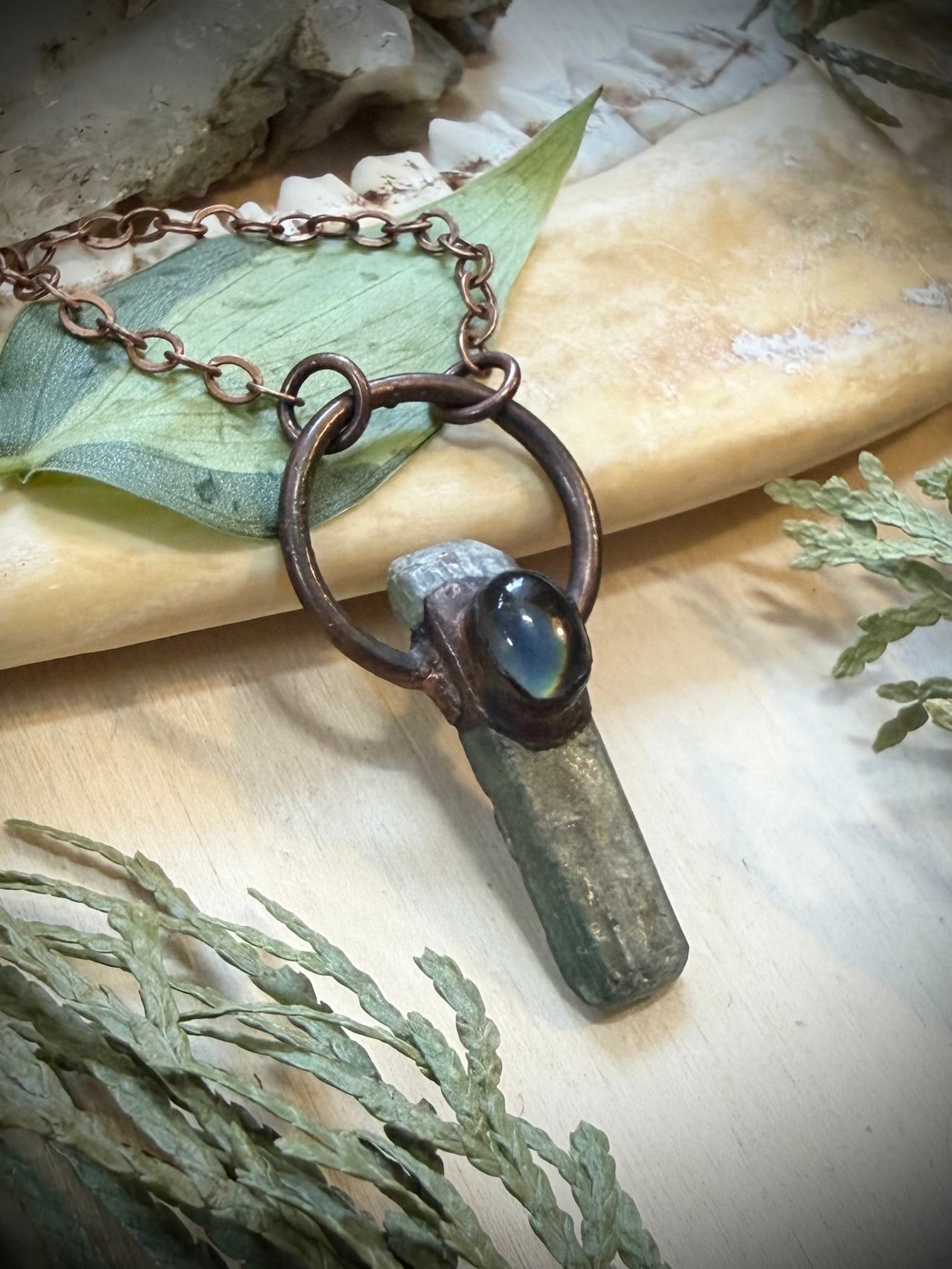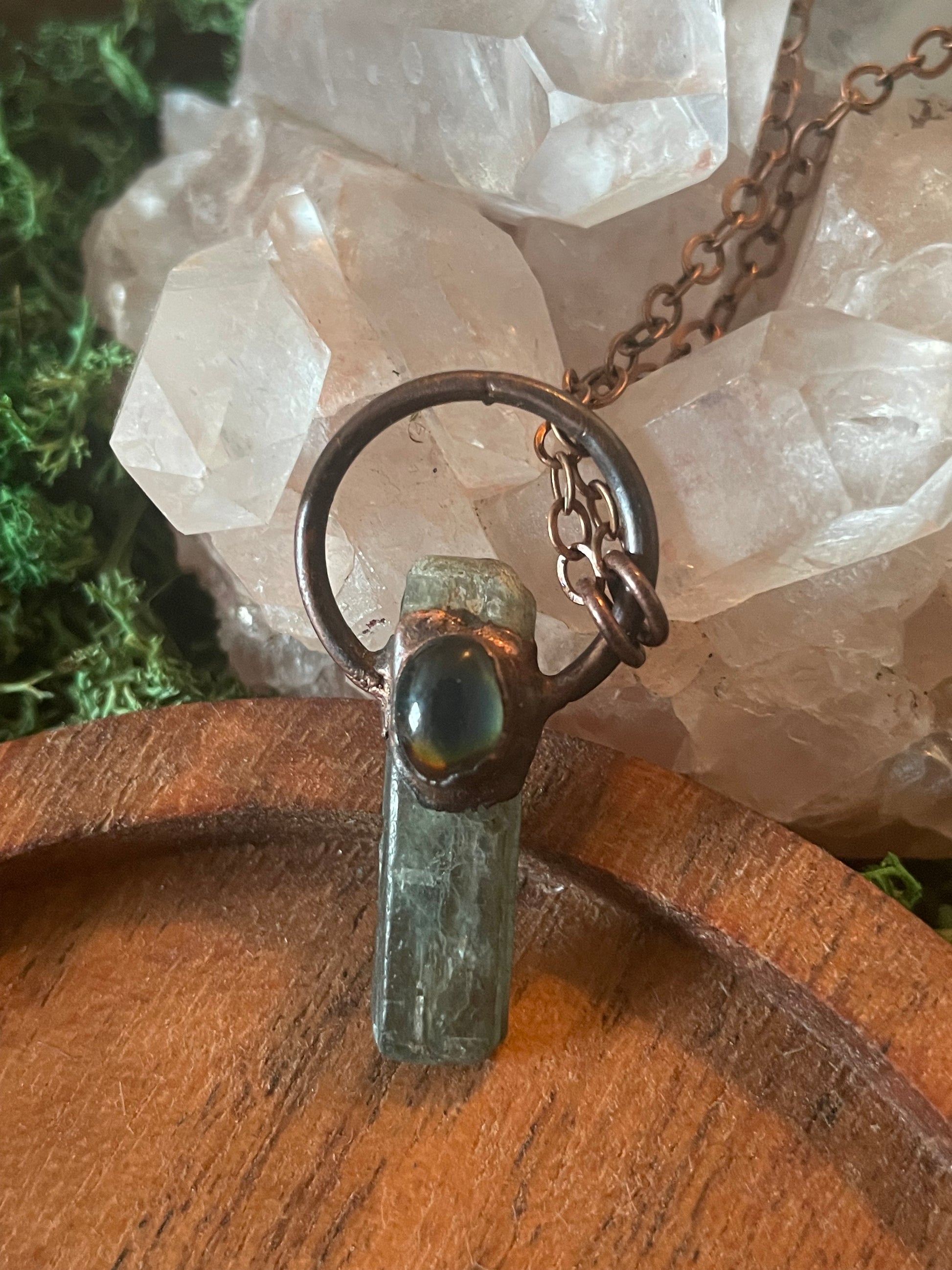 Electroformed Copper Mood stone and Green Kyanite Necklace