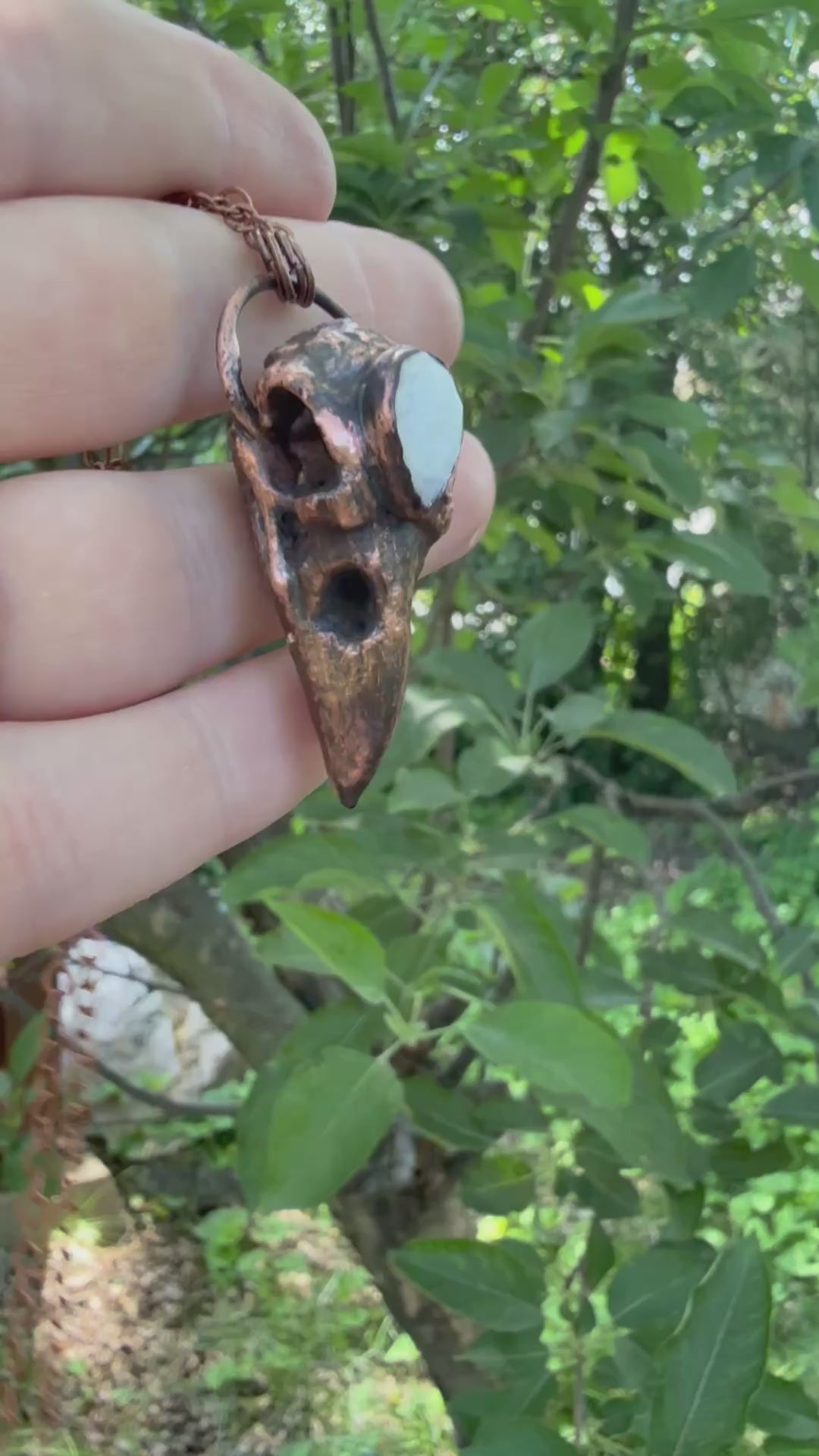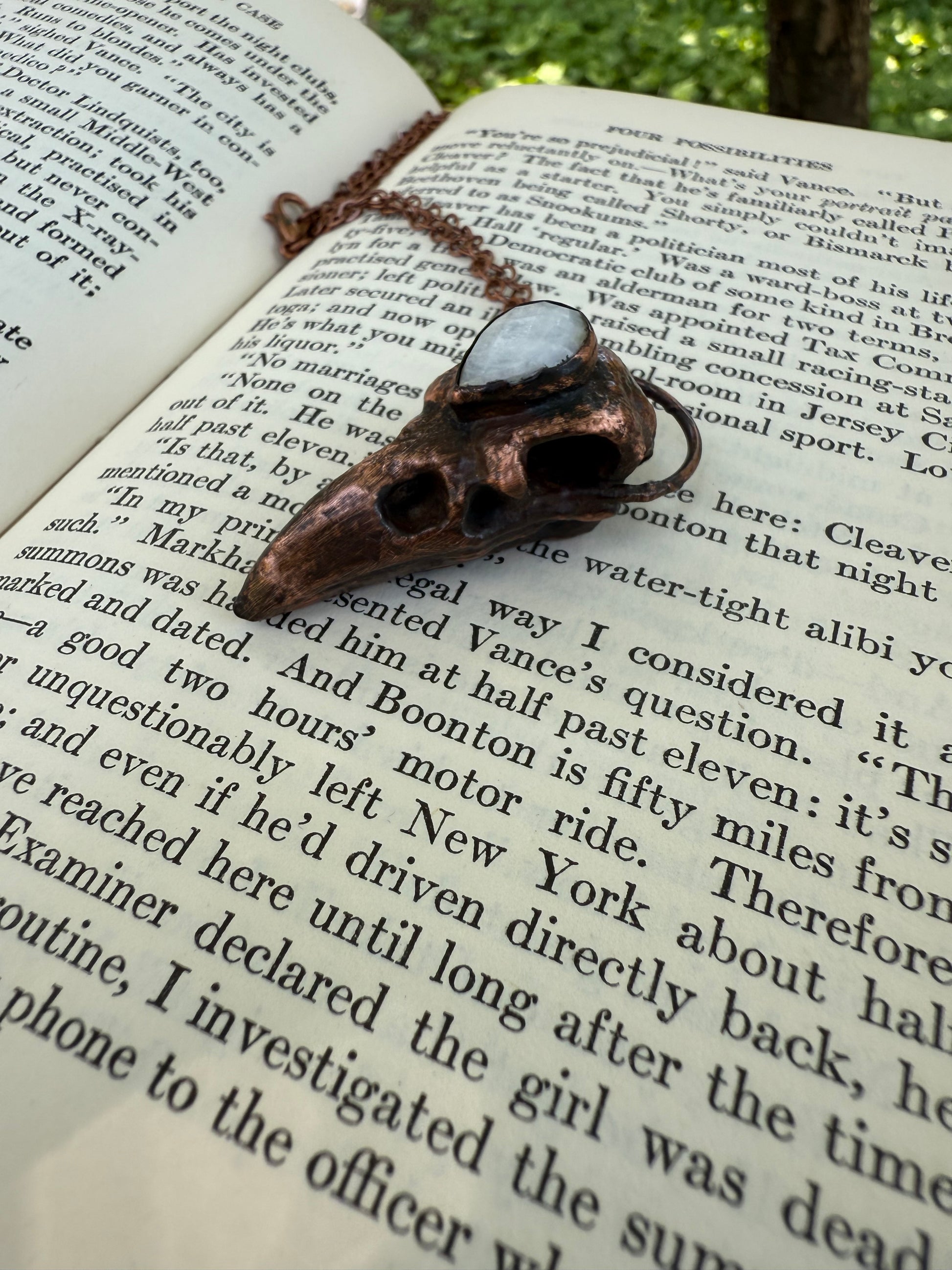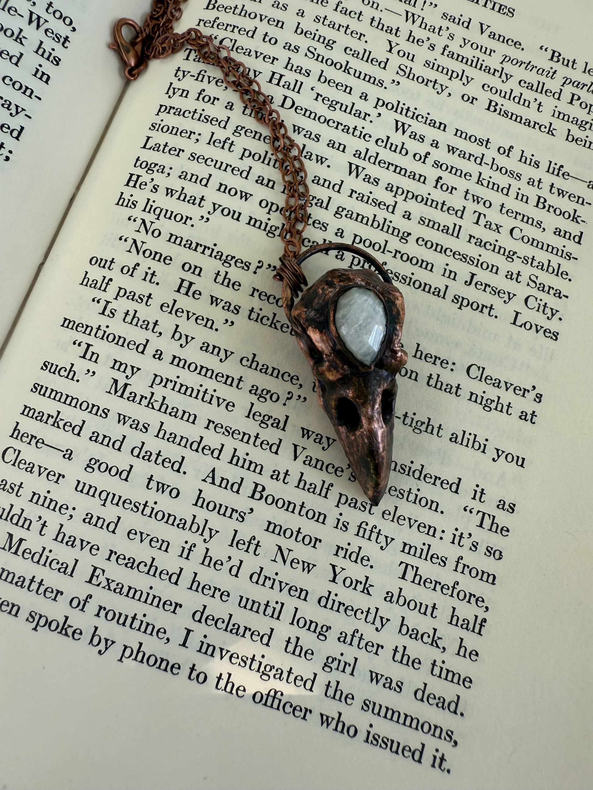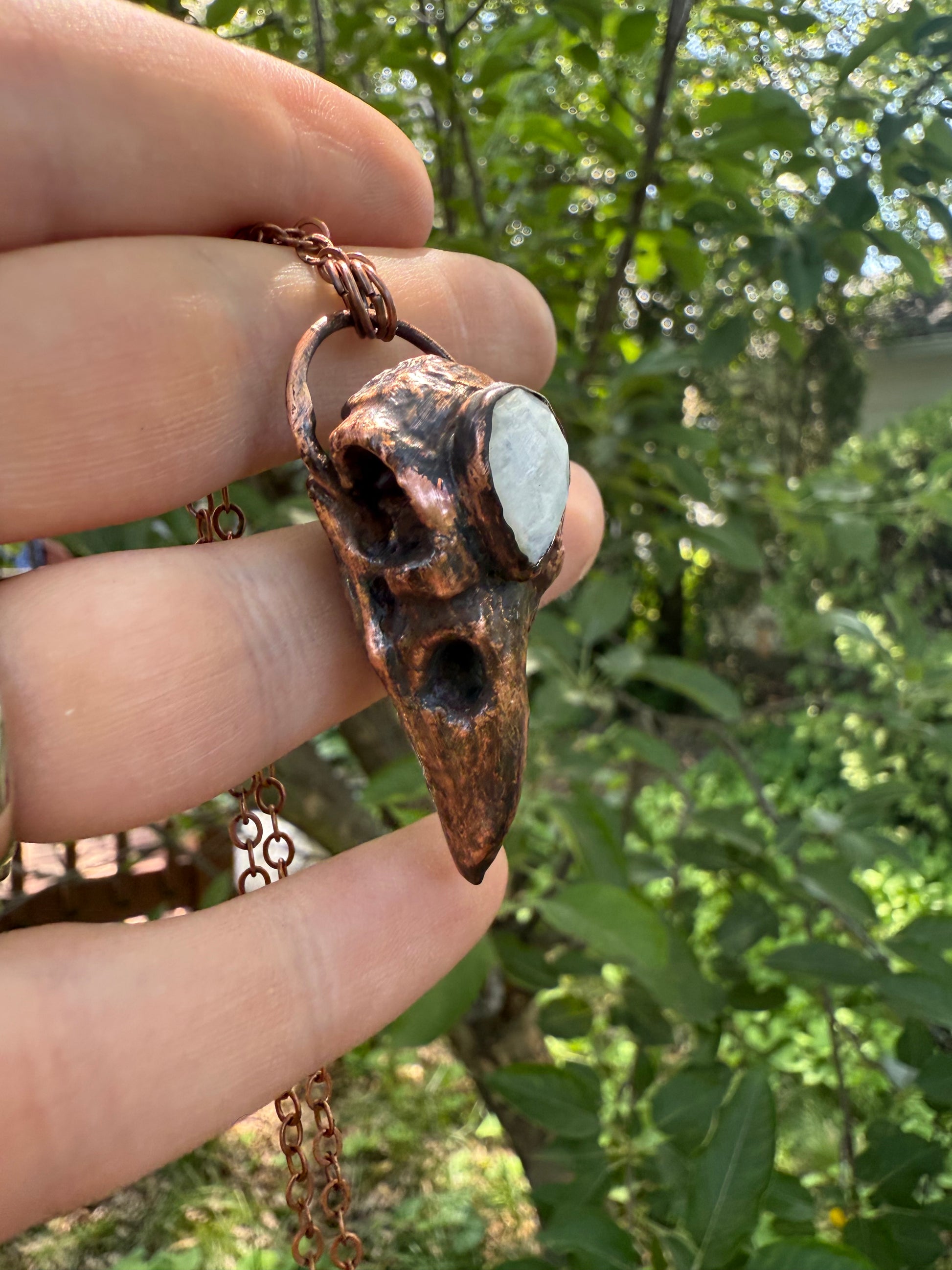 Electroformed Copper Raven Skull with Moonstone Necklace