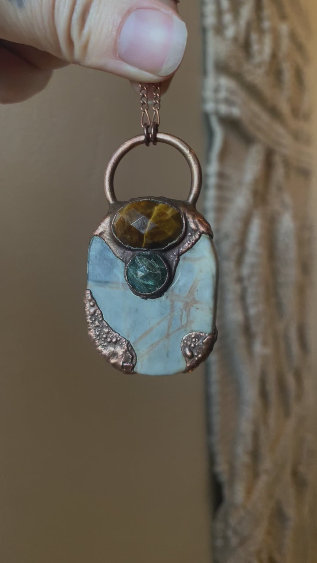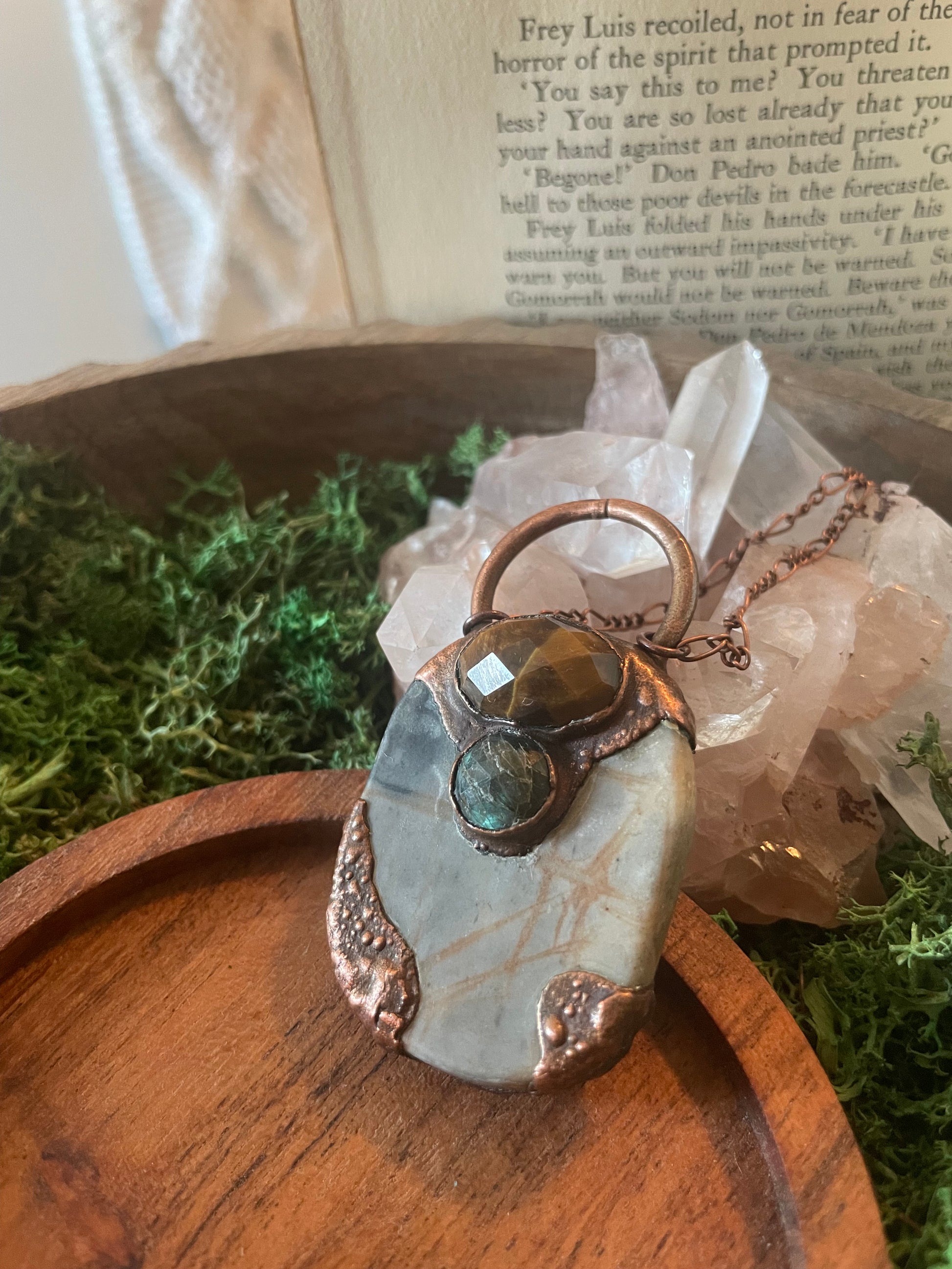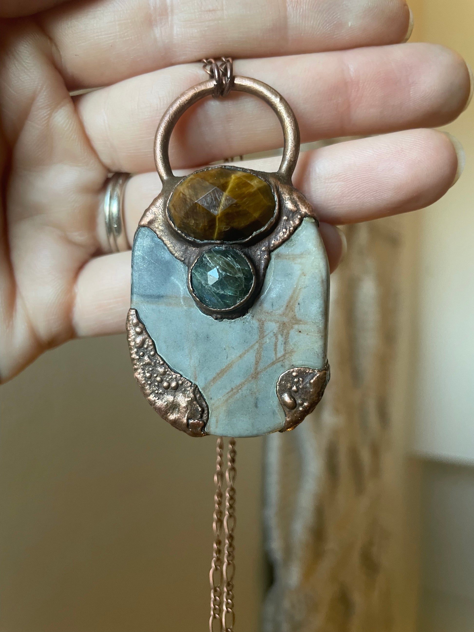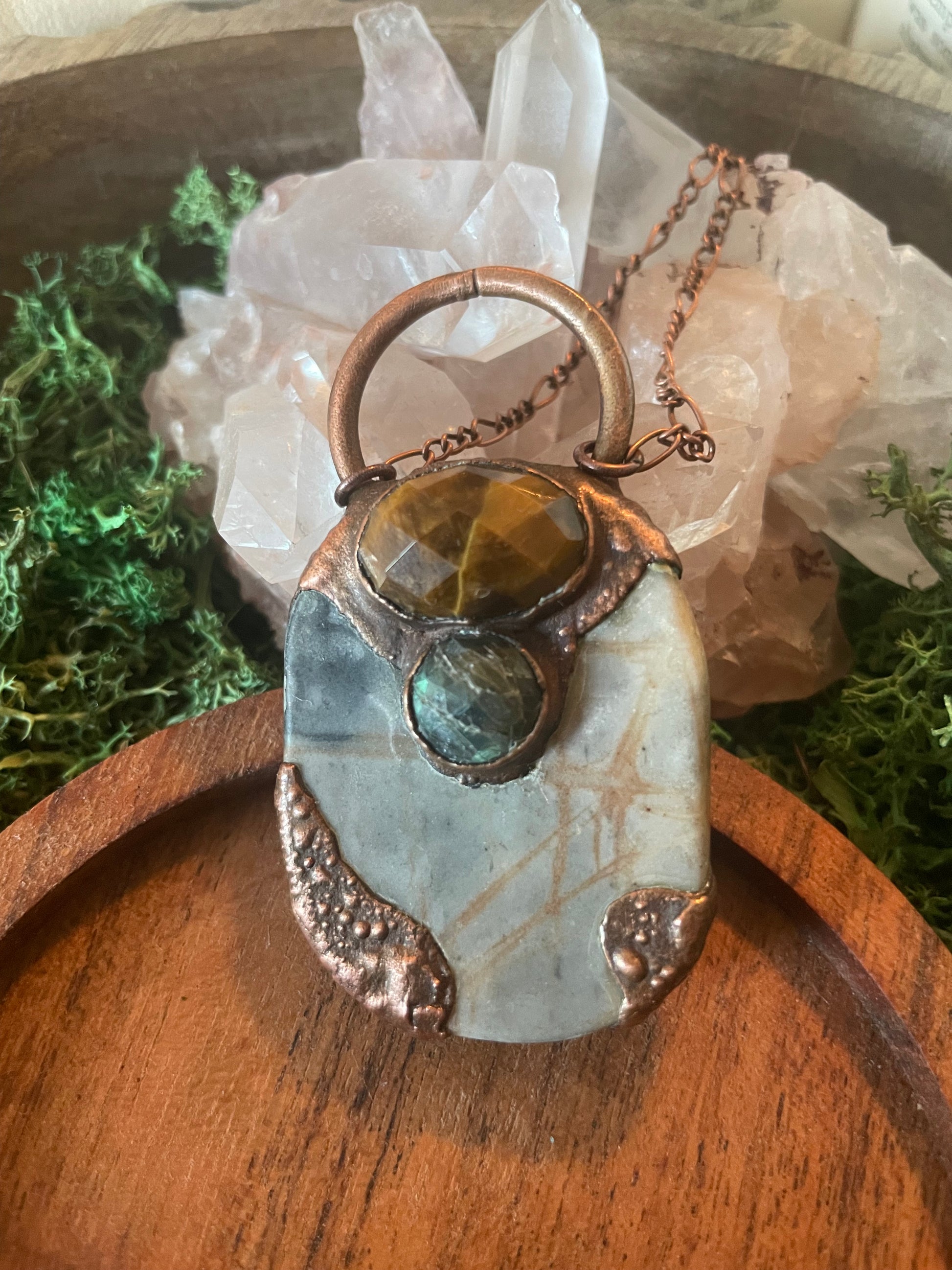 Electroformed Copper Tiger Eye Labradorite and Network Jasper Necklace